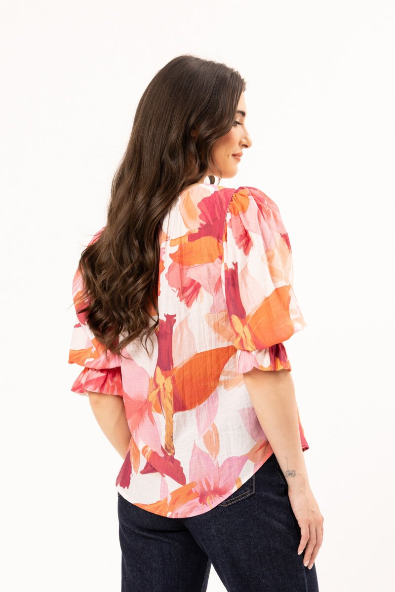 The Seeking Lola Magnificent Top is a lightweight printed blouse with soft volume through the sleeves and an easy drape through the body. A polished piece that works just as well dressed up as it does with denim.
