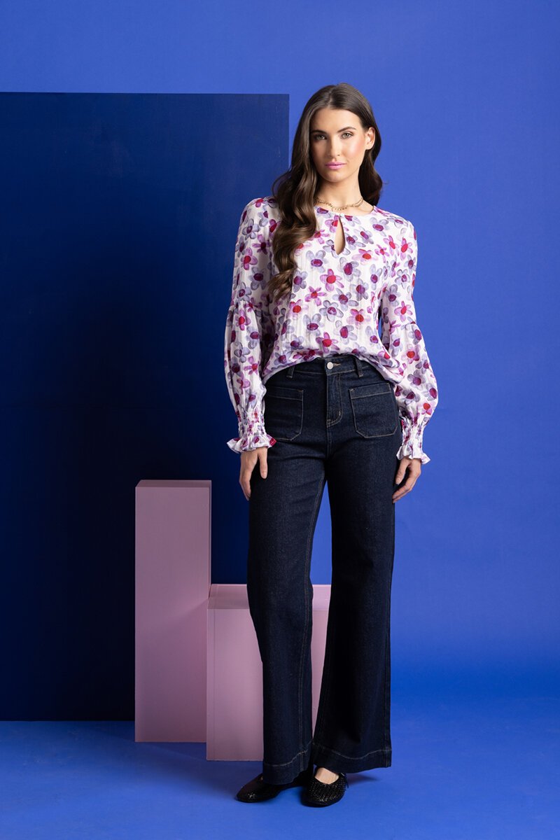 The Seeking Lola Vienna Blouse in Violet Bloom is a soft statement with a fresh pop of colour. Floaty through the body with delicate detail at the neckline and cuffs, it’s an easy piece that feels just that little bit special.
