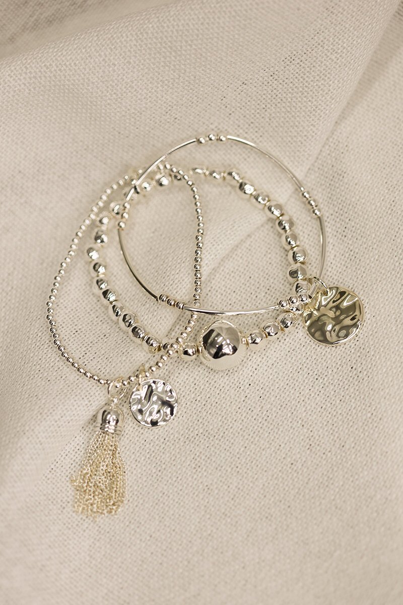 The She Jewellery Charm Stack Bracelet set makes styling easy. Layered beads, textured coins and a soft tassel bring movement and shine—wear together for impact or mix into your stack for an effortless finish.