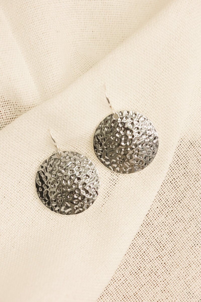 A timeless hammered disc earring that catches the light beautifully. Lightweight with subtle texture and movement, they’re an easy everyday statement that pairs effortlessly with both casual and dressy looks.