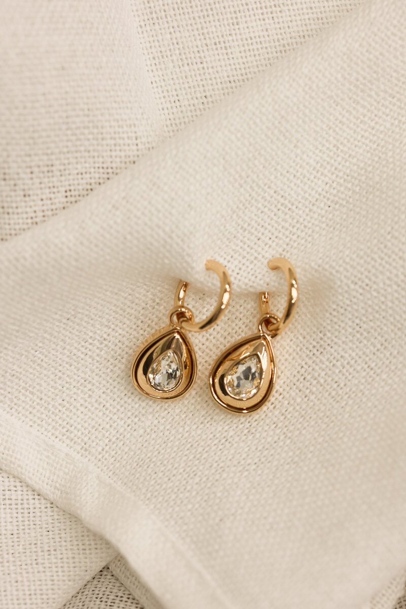 A delicate hoop earring with a sparkling teardrop crystal that catches the light beautifully. Elegant and easy to wear, perfect for adding a subtle touch of shine to everyday or evening looks.