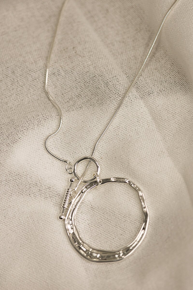 The She Jewellery Halo Necklace is sleek, sculptural, and made to shine. It's organic open-circle pendant catches the light beautifully, paired with a fine chain and toggle clasp for a modern finish. Understated yet striking — perfect for everyday wear or layering with your favourite pieces.