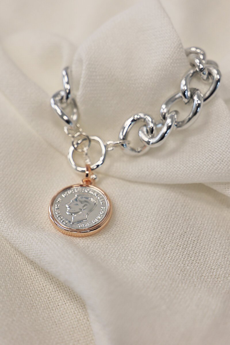 Chunky chain, bold charm, a whole lot of attitude. SHE Jewellery Silver Fortune Bracelet is the bracelet that takes your wrist game to the next level. Perfect for styling with soft knits or your favourite button-up for an effortless lunch-with-the-girls vibe.