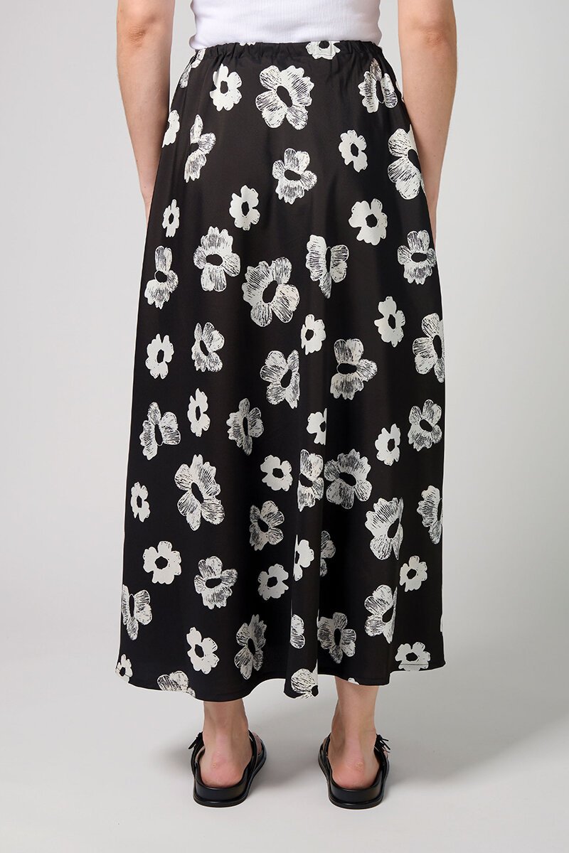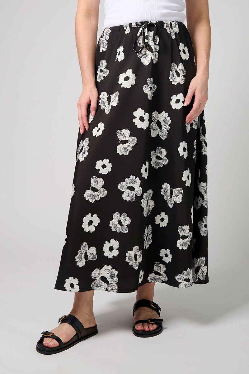 Stella + Gemma Anastasia Skirt – A black maxi skirt scattered with bold white blooms, finished with a comfortable elasticated waistband and drawstring tie. An easy, breezy style that’s perfect for pairing with tanks, tees, or a crisp shirt.