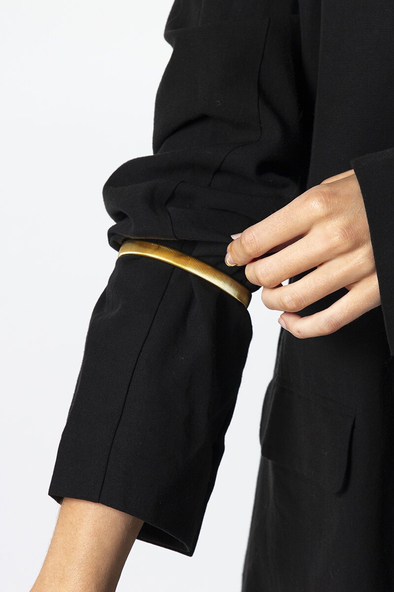 The Stella + Gemma Arm Bands are the secret to perfect sleeve scrunching—every time. Made from sleek metal with a flexible fit, they hold your sleeves in place while adding a subtle touch of polish. Practical, stylish, and totally clever.