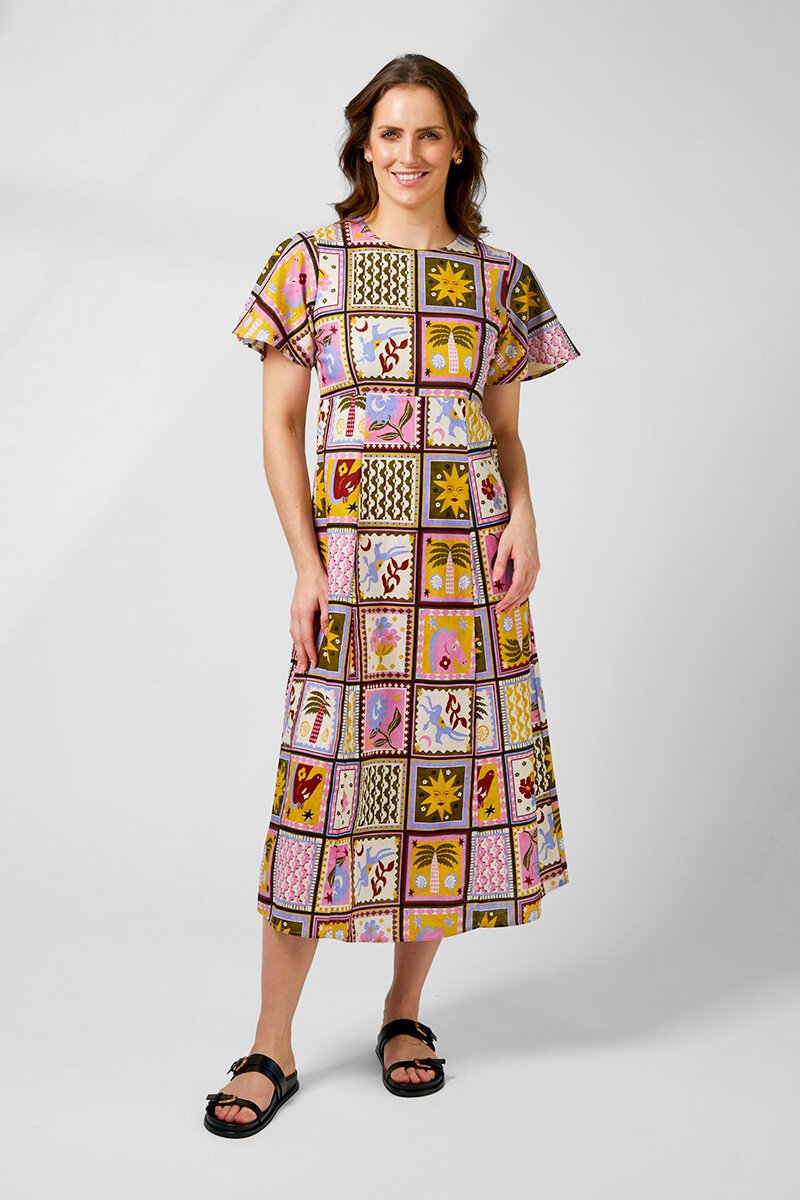 The Stella + Gemma Carlotta Dress is made to stand out. With flutter sleeves, a gently fitted waist, and a swishy midi skirt, it’s the bold tile print that really steals the show. Pair with sandals and let the dress do the talking.