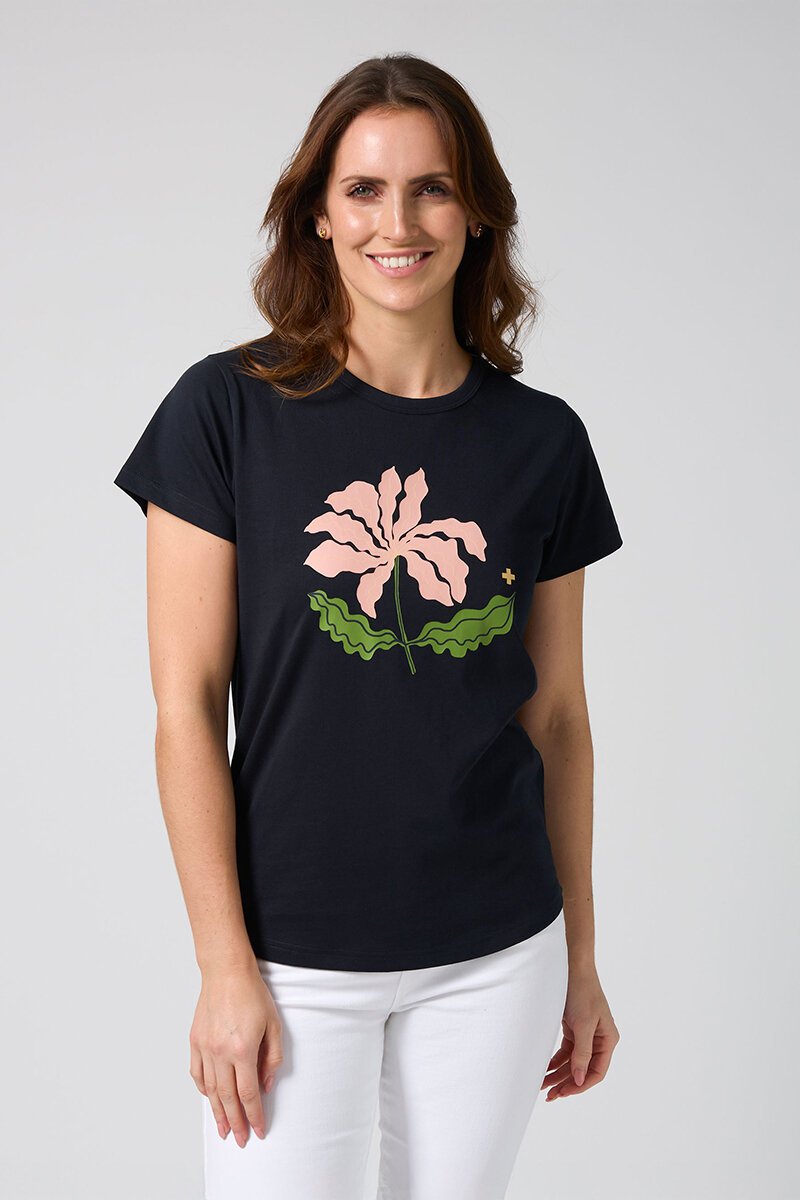 The Stella + Gemma Classic Blushing Blooms Tee is the kind of top that brings instant sunshine to your day. Featuring a playful floral graphic on a soft, relaxed-fit tee, it’s perfect with denim or tucked into skirts for easy everyday styling.