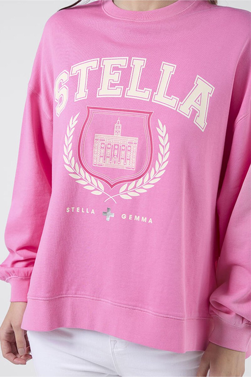 The Stella + Gemma College Harvard Sunday Sweater brings bold varsity vibes in the happiest shade of pink. With its crest-style graphic and relaxed fit, it’s giving weekend energy no matter the day. Pair with denim or go full lounge mode.