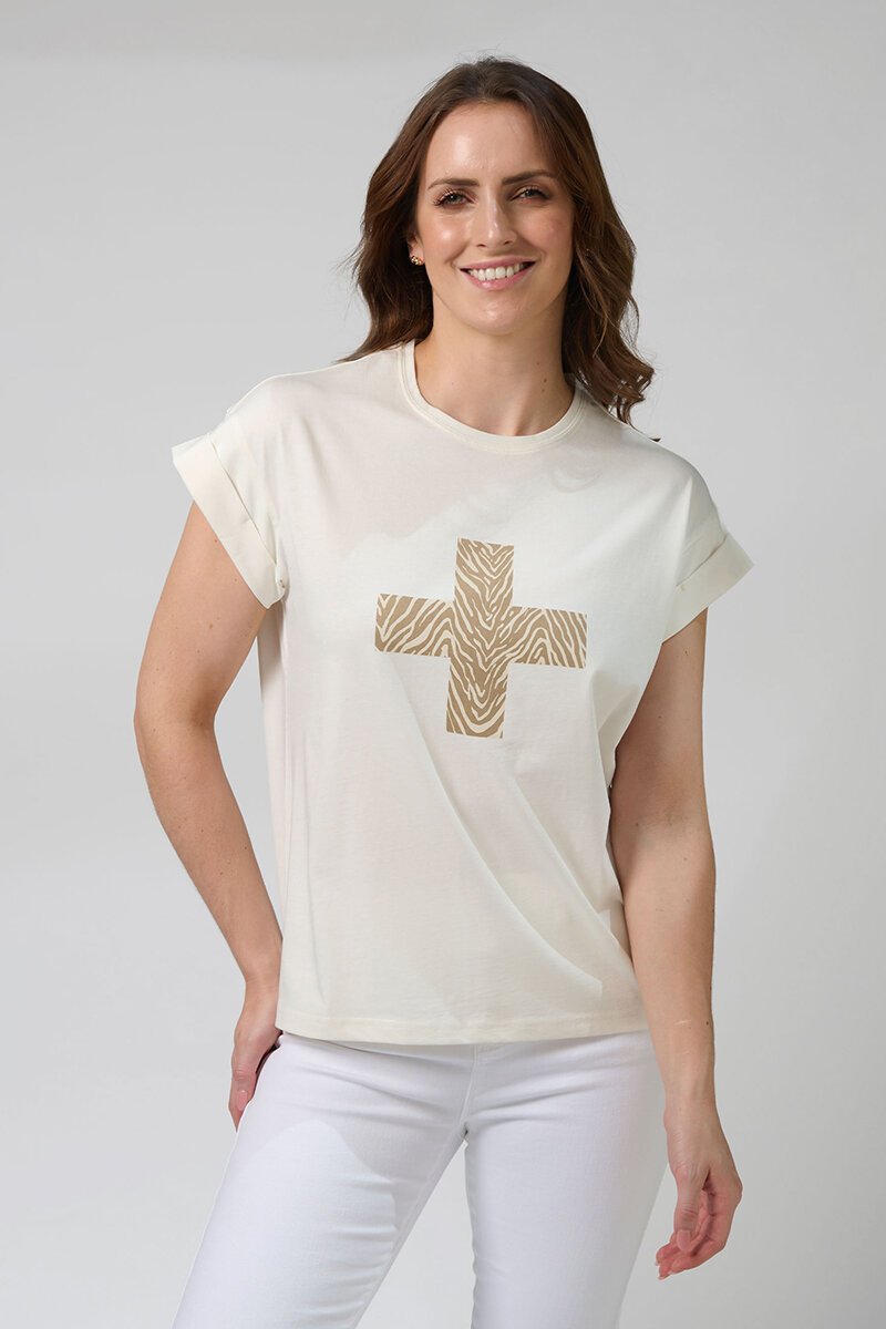 The Stella + Gemma Cuff Zebra Cross Tee brings a little wild edge to your everyday look. Featuring rolled sleeves and the iconic zebra cross print, it’s an easy, relaxed fit that pairs effortlessly with denim, shorts, or skirts all season long.