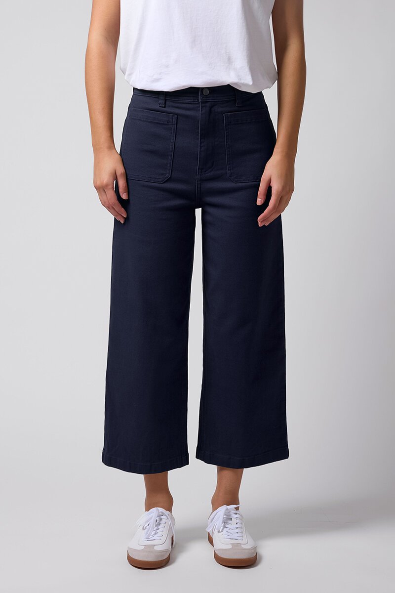 The Stella + Gemma Dina Pants are an everyday staple with a cool-girl edge. The cropped wide leg and patch pockets give them just enough structure to dress up or down—pair with a blazer for work, or a hoodie and sneakers for weekend ease.