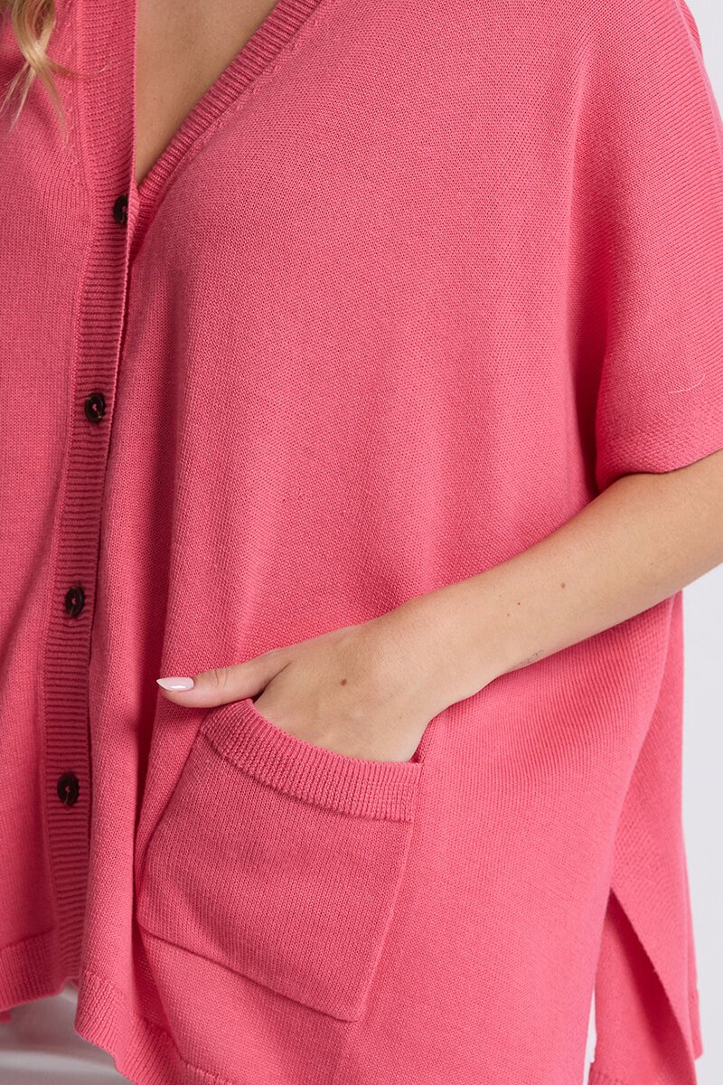 The Elliot Cardigan is all about relaxed layering. With its button-through front, patch pockets, and drapey oversized fit, it’s the perfect blend of casual and put-together. Light cotton knit makes it easy to wear year-round.