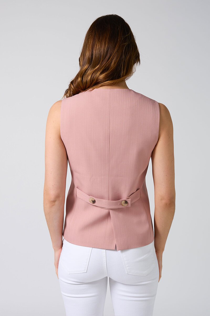 The Stella + Gemma Farrah Vest is a tailored sleeveless style with a V-neckline and button front. Sharp yet wearable, it layers beautifully or works solo for a modern look.