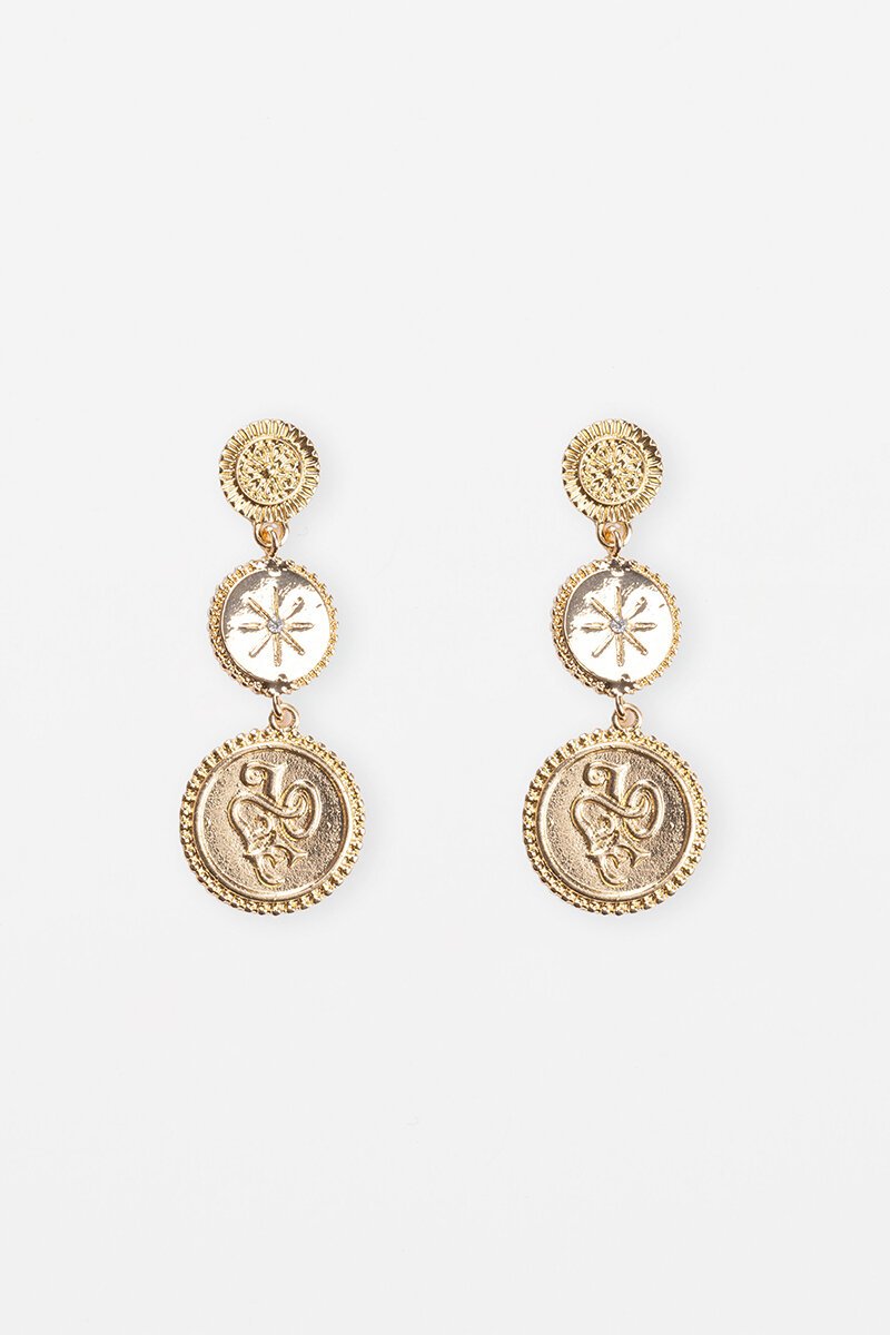 Stella + Gemma Gold Triple Medalion Earring