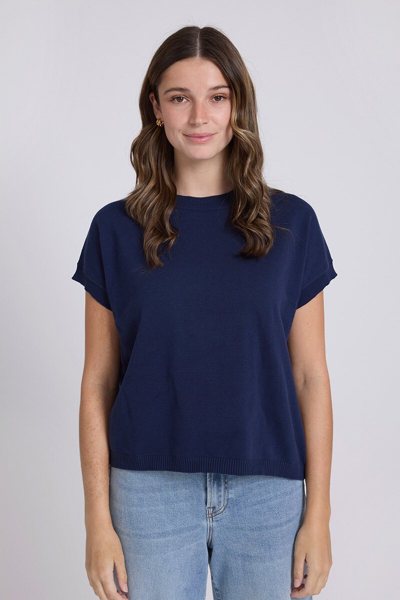 The Stella + Gemma Gwen Tee is a soft knit tee with a relaxed fit, rolled sleeves and ribbed trims. Easy, flattering and perfect for everyday wear with denim or tailored pants.