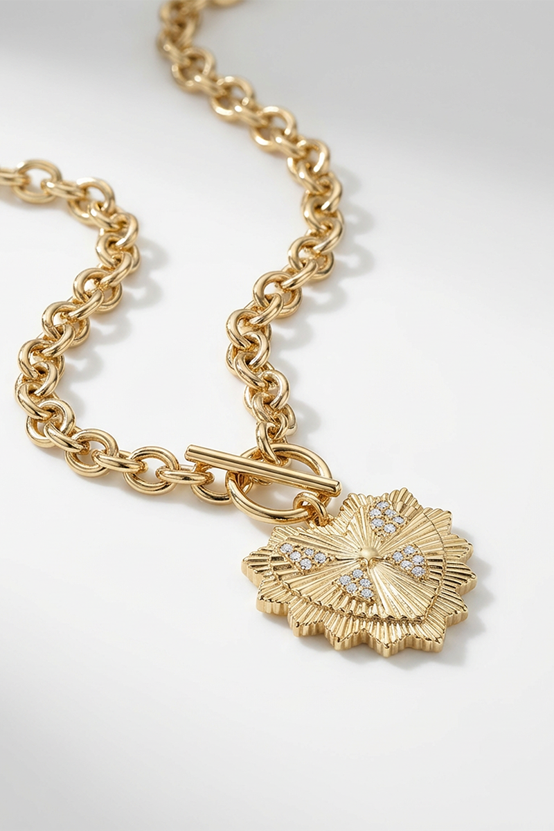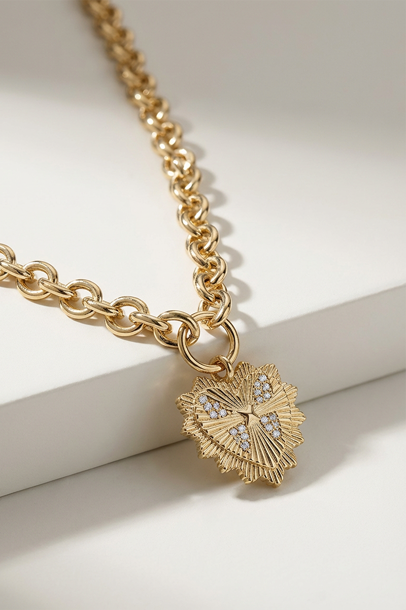 The Stella + Gemma Heart Fob Necklace makes a statement without trying too hard. A bold chain meets a detailed heart pendant, adding just the right amount of edge to everyday looks.