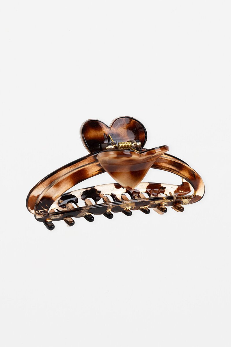 The Stella + Gemma Heart Oval Hair Claw adds a subtle touch of sweetness to any hairstyle. With its curved silhouette and glossy tortoiseshell finish, this clip combines everyday ease with a playful heart detail — a cute twist on a timeless accessory.