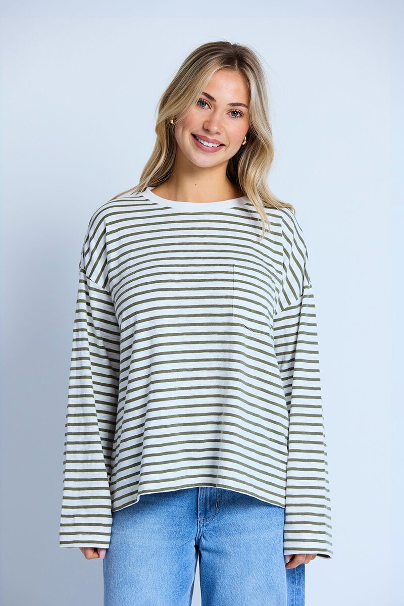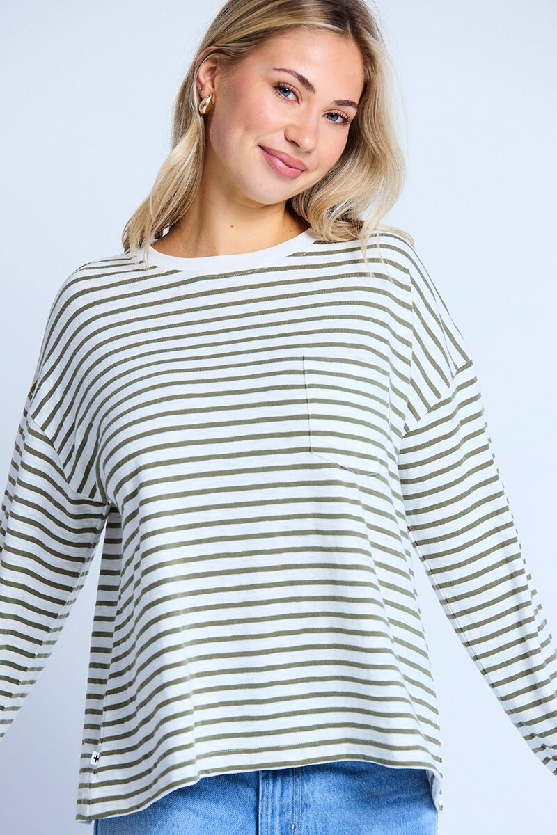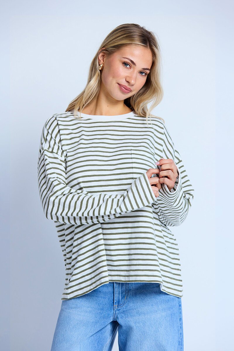 Stella + Gemma Herbal Stripe Drop Shoulder Tee