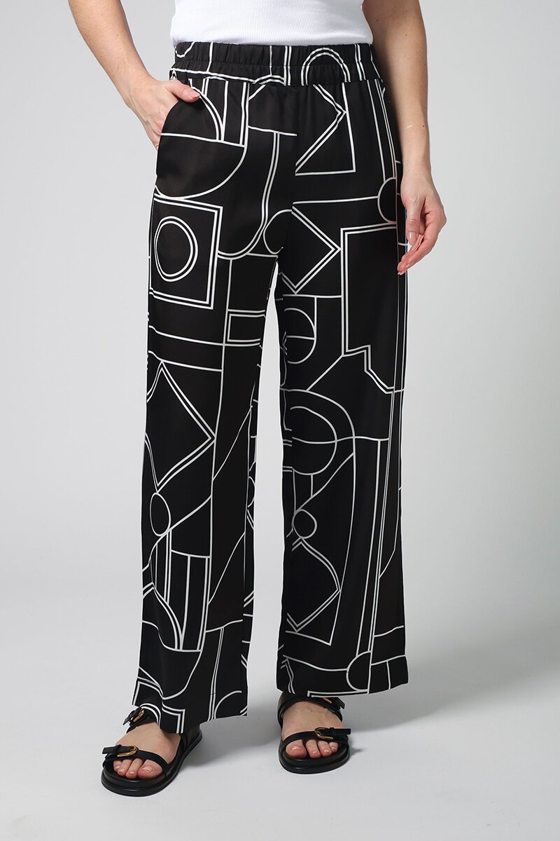 The Stella + Gemma Jenna Pant features a relaxed wide-leg fit with an elasticated waistband and bold geo print. Easy to wear, comfortable, and perfect paired with simple tees or blouses.