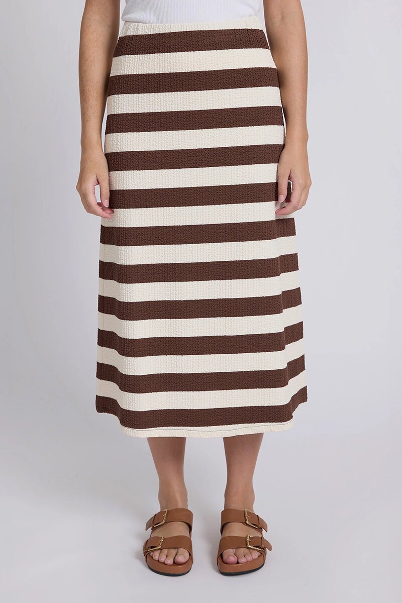 The Stella + Gemma Jordie Skirt is an easy pull-on midi with a clean, flattering shape. Crafted in a textured knit, it sits comfortably on the waist and falls straight through the body—perfect styled with a tee, knit or matching top.