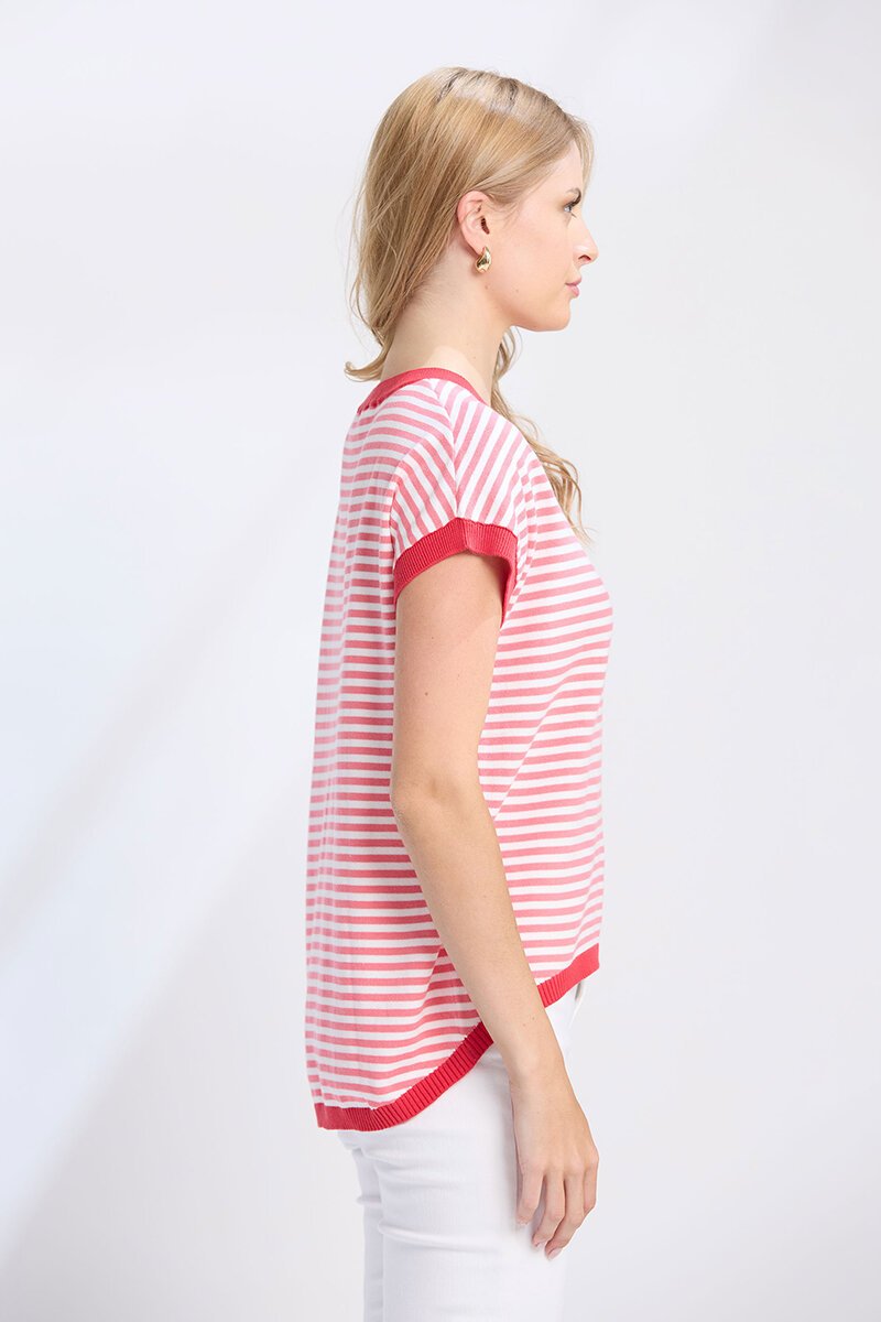 An easy-wear knit tee with short sleeves, ribbed trims, and a relaxed fit through the body. A lightweight layering piece that feels as good as it looks—perfect for casual days, weekend plans, and everything in between.