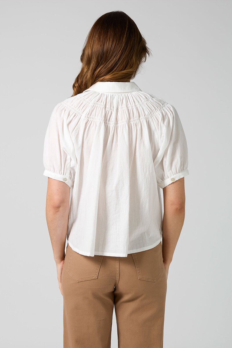 The Stella + Gemma Mimi Blouse is an easy nod to vintage charm. With gathered detailing through the yoke, a soft collar, and floaty silhouette, it’s a blouse that feels feminine without trying too hard. Just add denim and go.