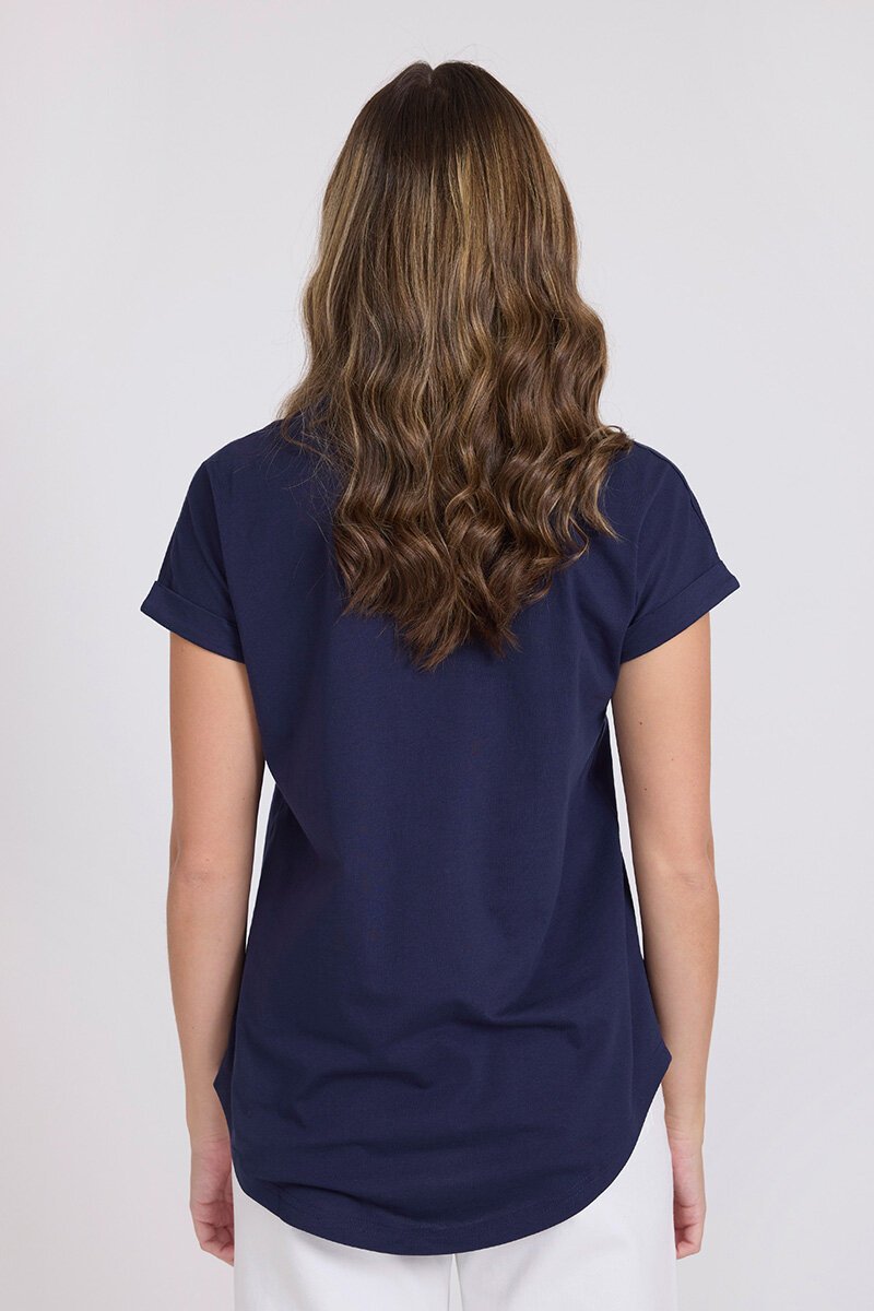 The Stella + Gemma Soho Cuff Crew is a relaxed everyday tee with a soft hand feel and rolled cuff sleeves. Finished with a subtle tonal logo print, it’s easy to wear and effortless styled with denim, skirts or layered under jackets.