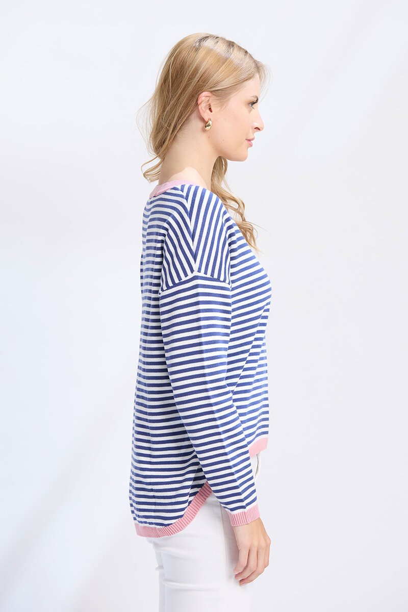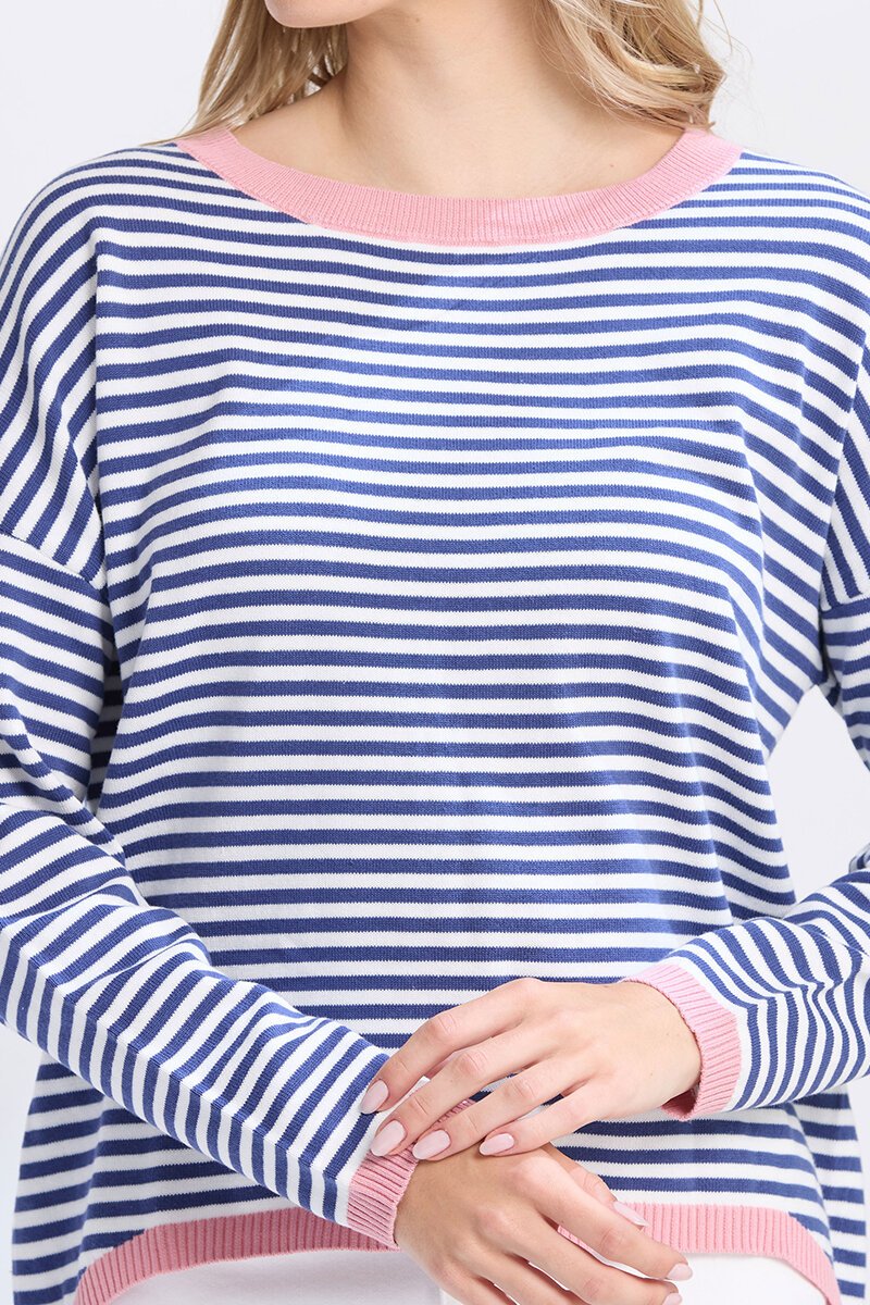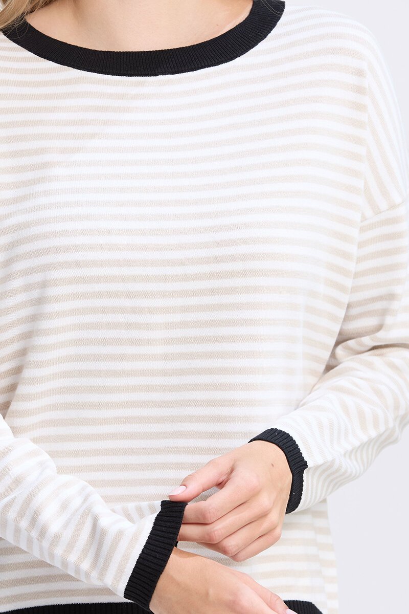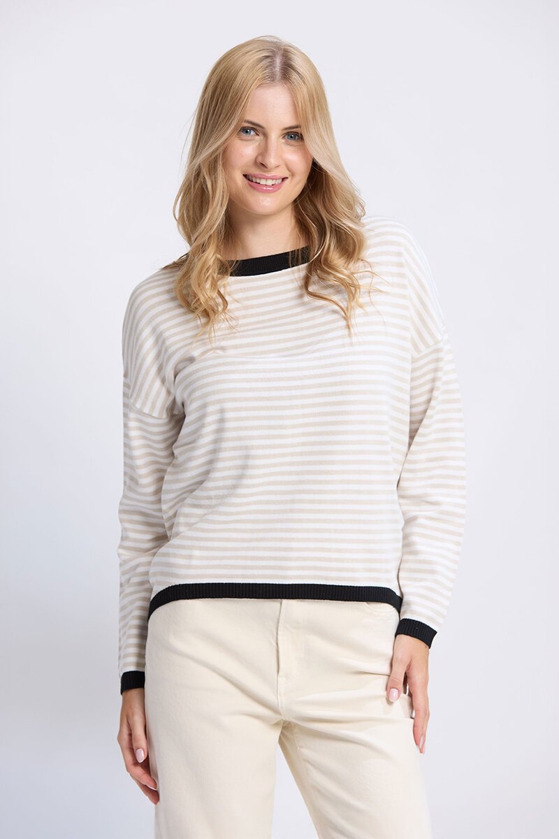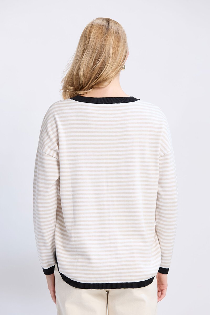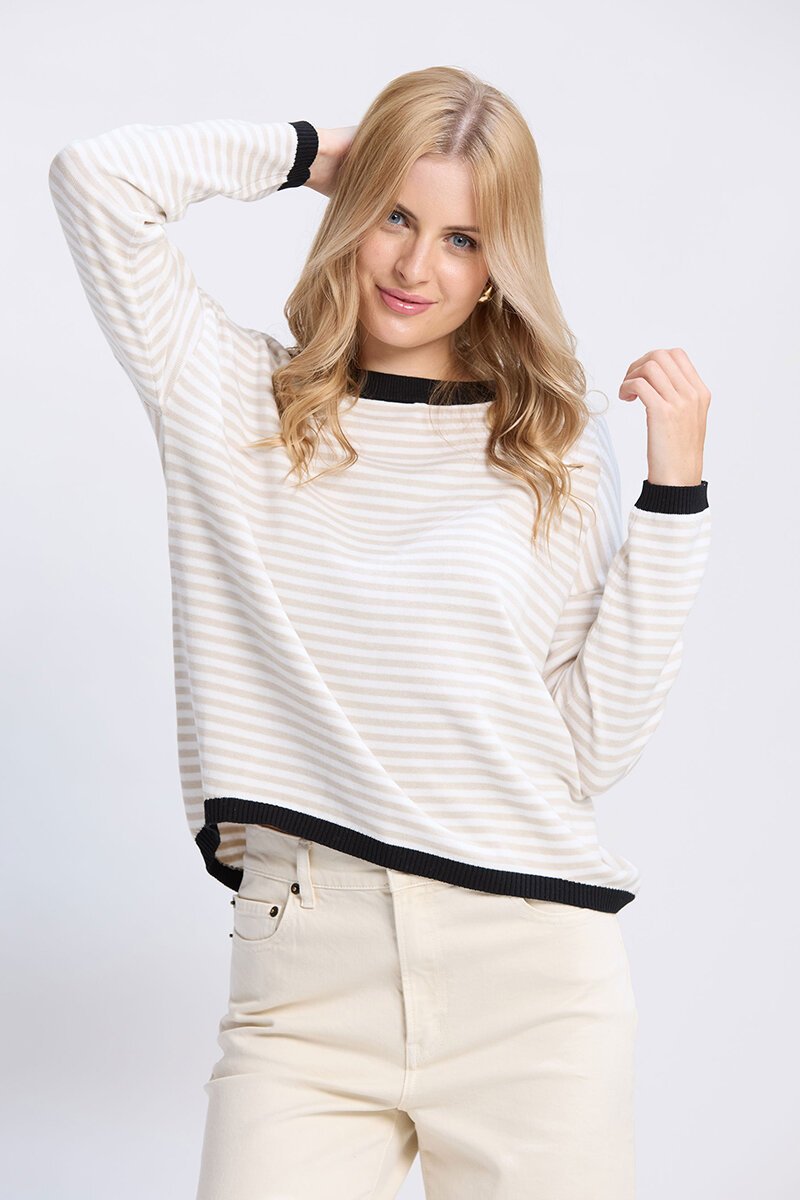 An easy everyday knit with a playful twist. The Stella + Gemma Stripe Street Top is relaxed through the body with a ribbed hem, cuff, and neckline trim. Soft, breathable, and so easy to throw on with denim or lounge pants.