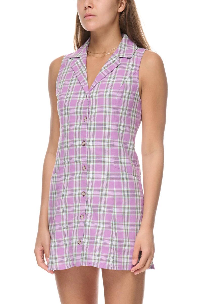 Elevate your style with the Check Tie Back Dress in Orchid. This fitted collared dress, crafted from soft cotton, is both elegant and comfortable. Featuring an all-over yardage check pattern, a soft lining for added comfort, and slanted pockets for convenience, this dress is perfect for any occasion. The tie back adds a touch of sophistication, making it a versatile and chic addition to your wardrobe.