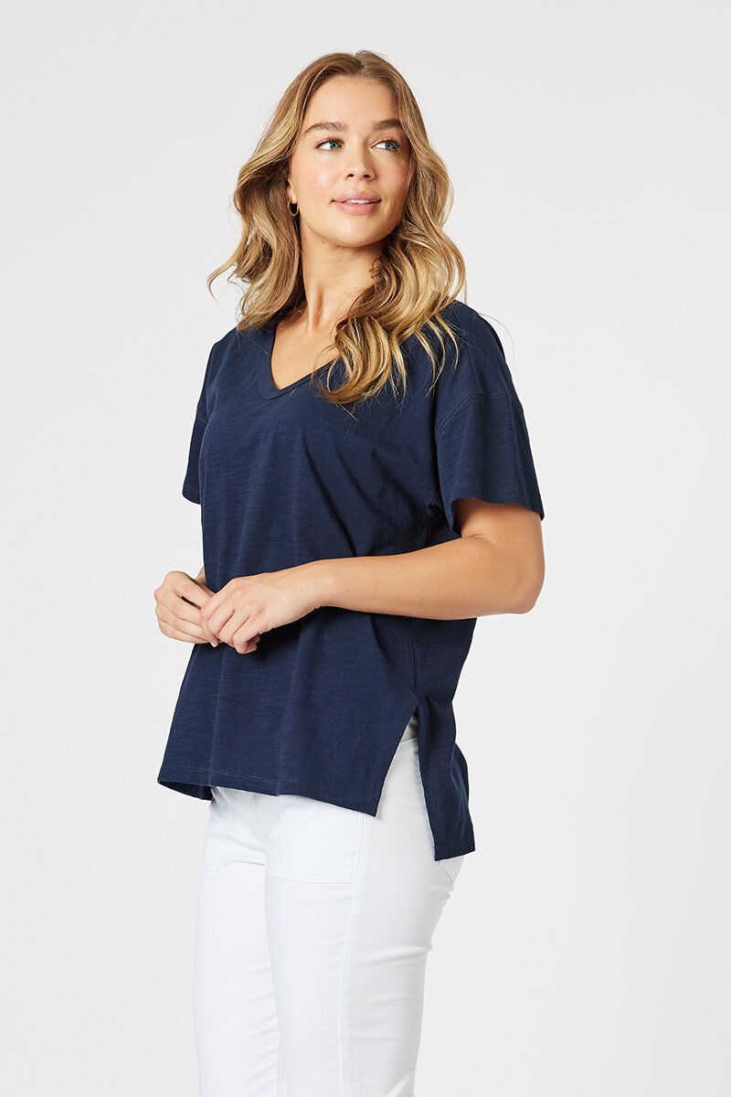 A classic V-neck tee that’s anything but basic. The Elle Tee is cut in a relaxed shape with a flattering drape and side splits for easy movement. Soft, breathable, and the kind of top you'll want on repeat. Looks great worn loose or tucked into denim.