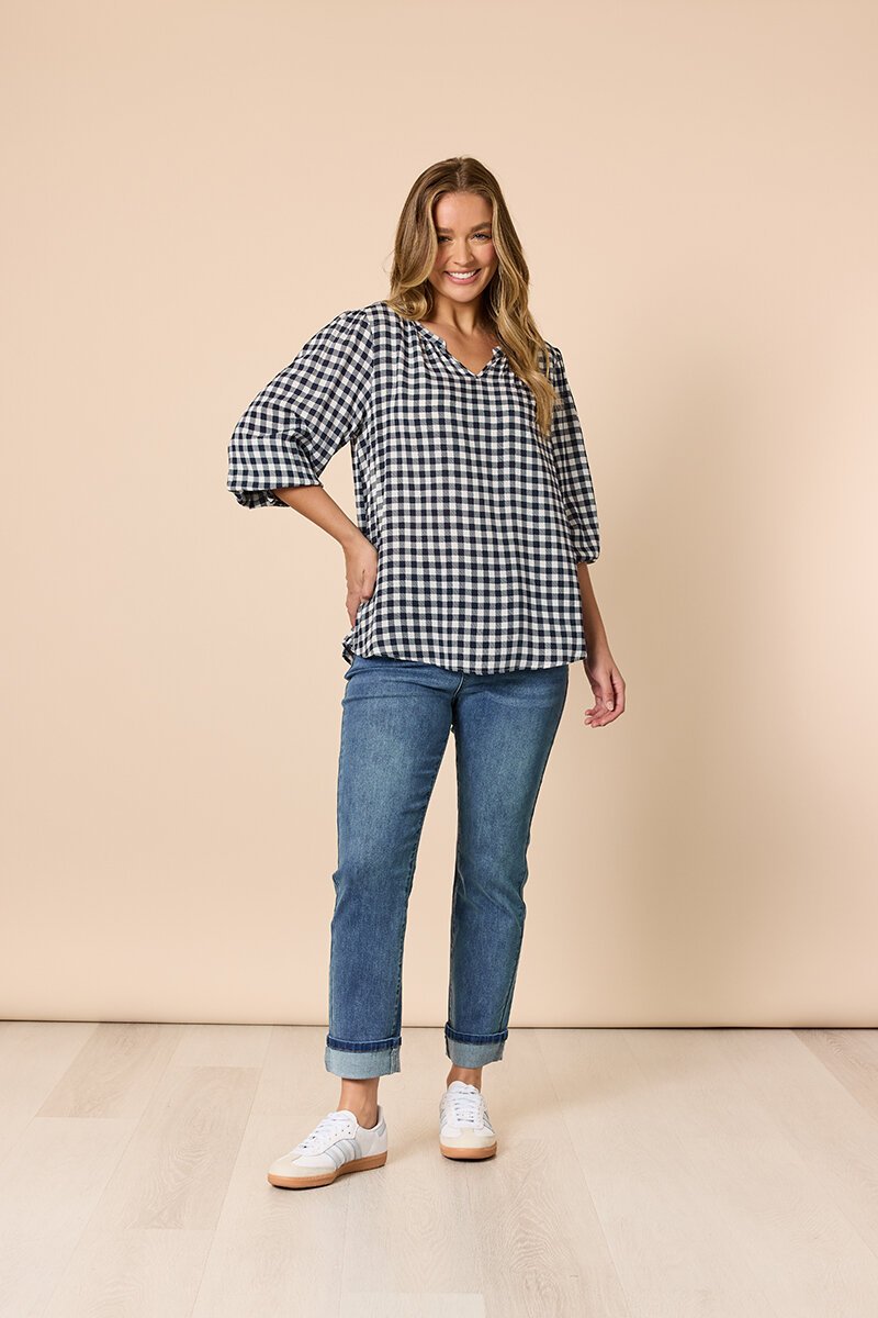 The Threadz Gingham Check Top is an easy, everyday style with a relaxed fit and soft sleeve detail. Comfortable and flattering, it’s an effortless throw-on piece that pairs beautifully with denim for casual days.