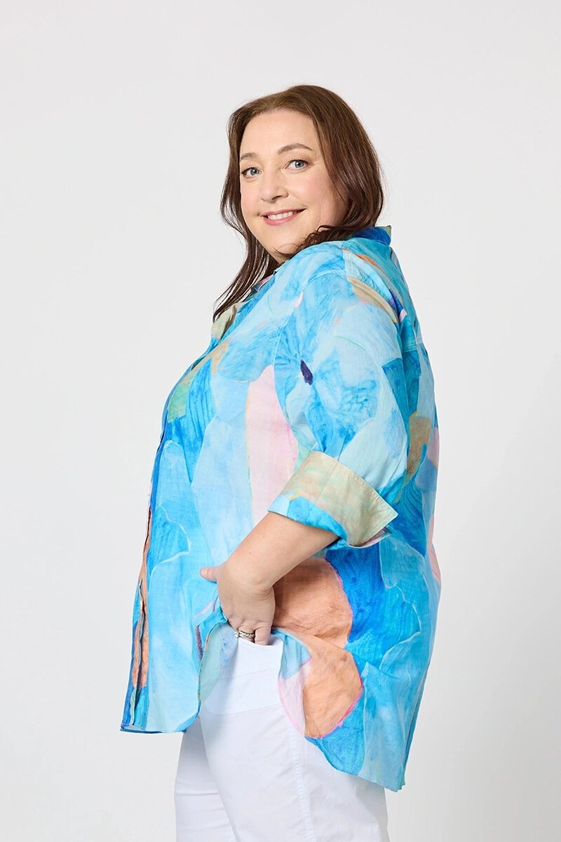 The Threadz Grazia Mio Caro Shirt brings colour and confidence to your wardrobe with its abstract painterly print. Featuring a relaxed button-through fit, classic collar, and versatile 3/4 sleeves, it’s the kind of shirt that feels just as good as it looks.