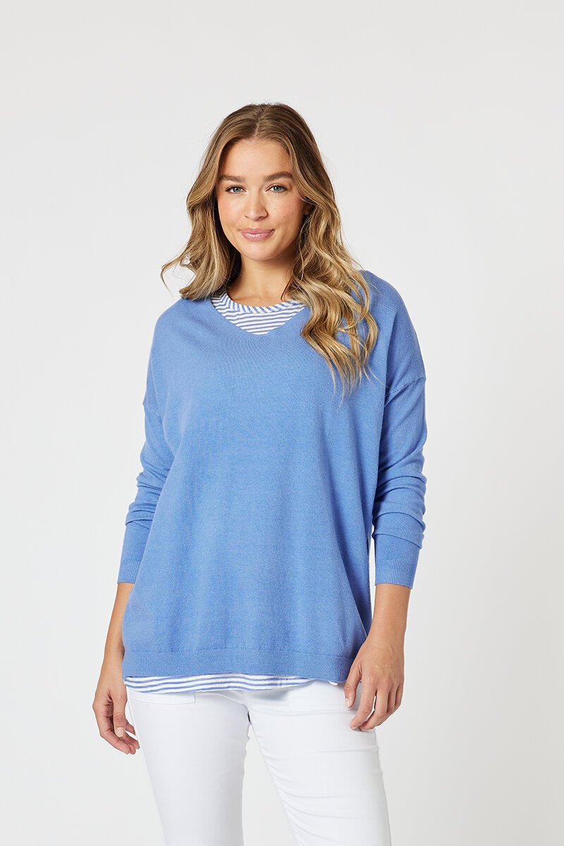 The Threadz Isabella Knit with Stripe Cami is the ultimate throw-on-and-go duo. With a soft V-neck knit layered over a striped cami, it’s your no-fuss answer to everyday dressing. Relaxed fit, lightweight feel, and colours that brighten your day—wear them together or mix and match with your wardrobe staples.
