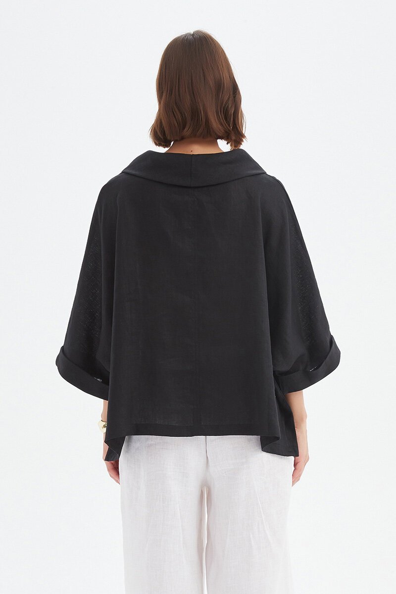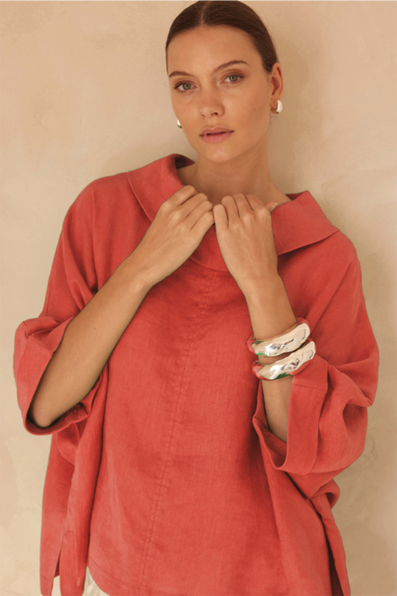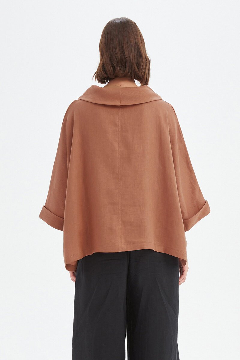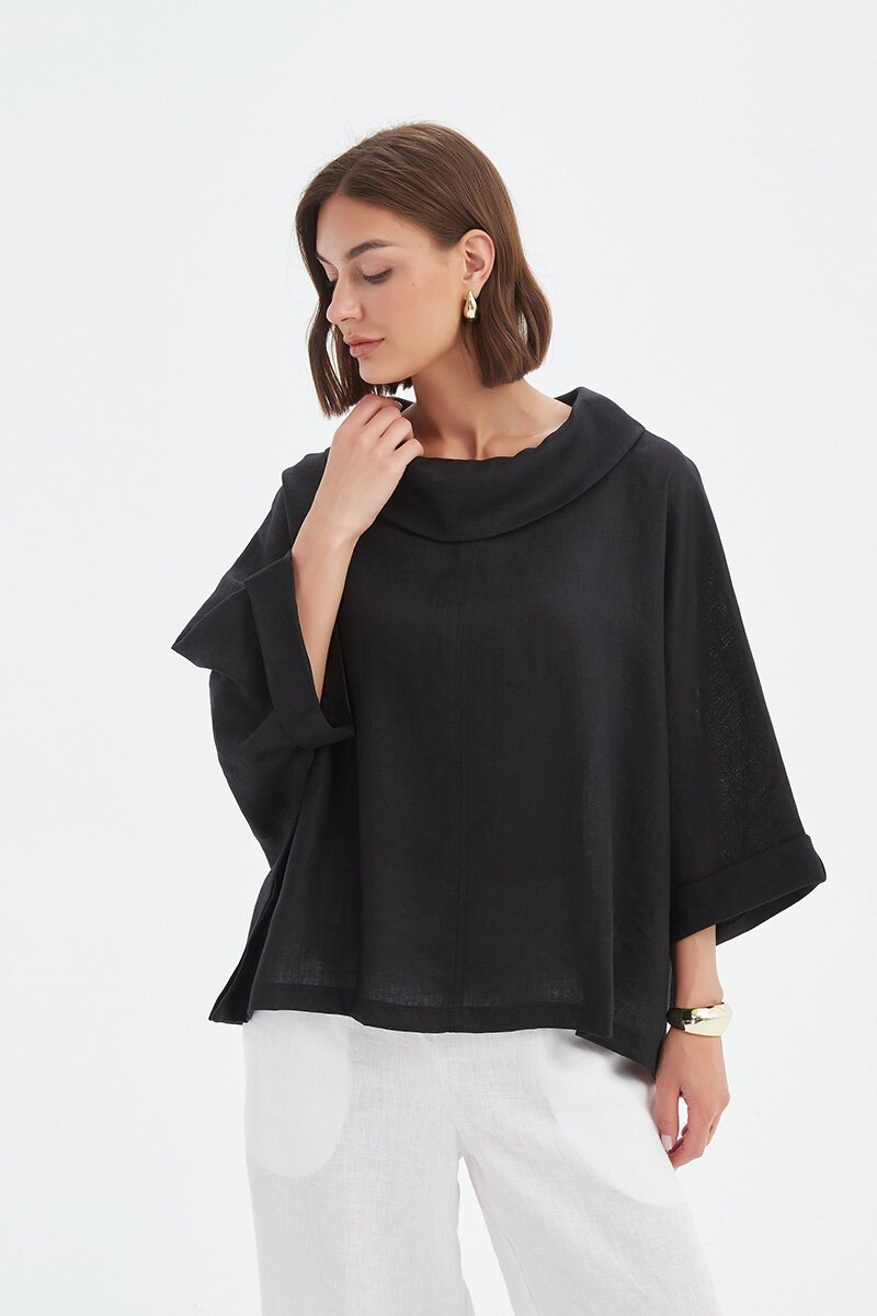 The Funnel Neck Boxy Top is one of those pieces that feels instantly cool. With its draped funnel neckline, boxy cut and relaxed sleeves, it strikes that perfect balance of easy and elevated. Pair with wide-legs or denim for modern, laid-back style.