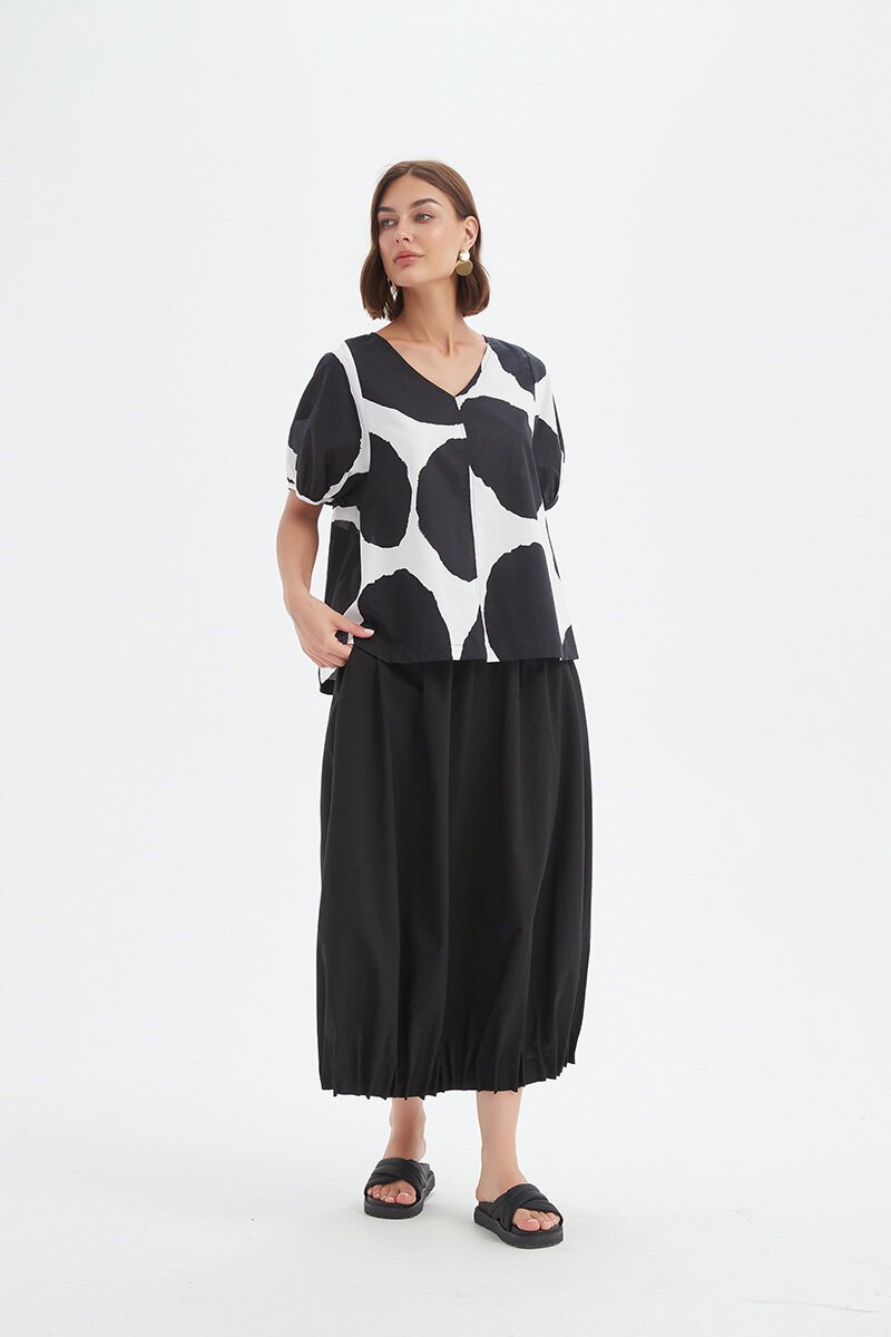 The V Neck Bishop Sleeve Top is one of those pieces that just makes getting dressed easy. With its bold print and floaty sleeves, it’s an instant mood booster. Pair with wide-leg pants or denim and you’re set.