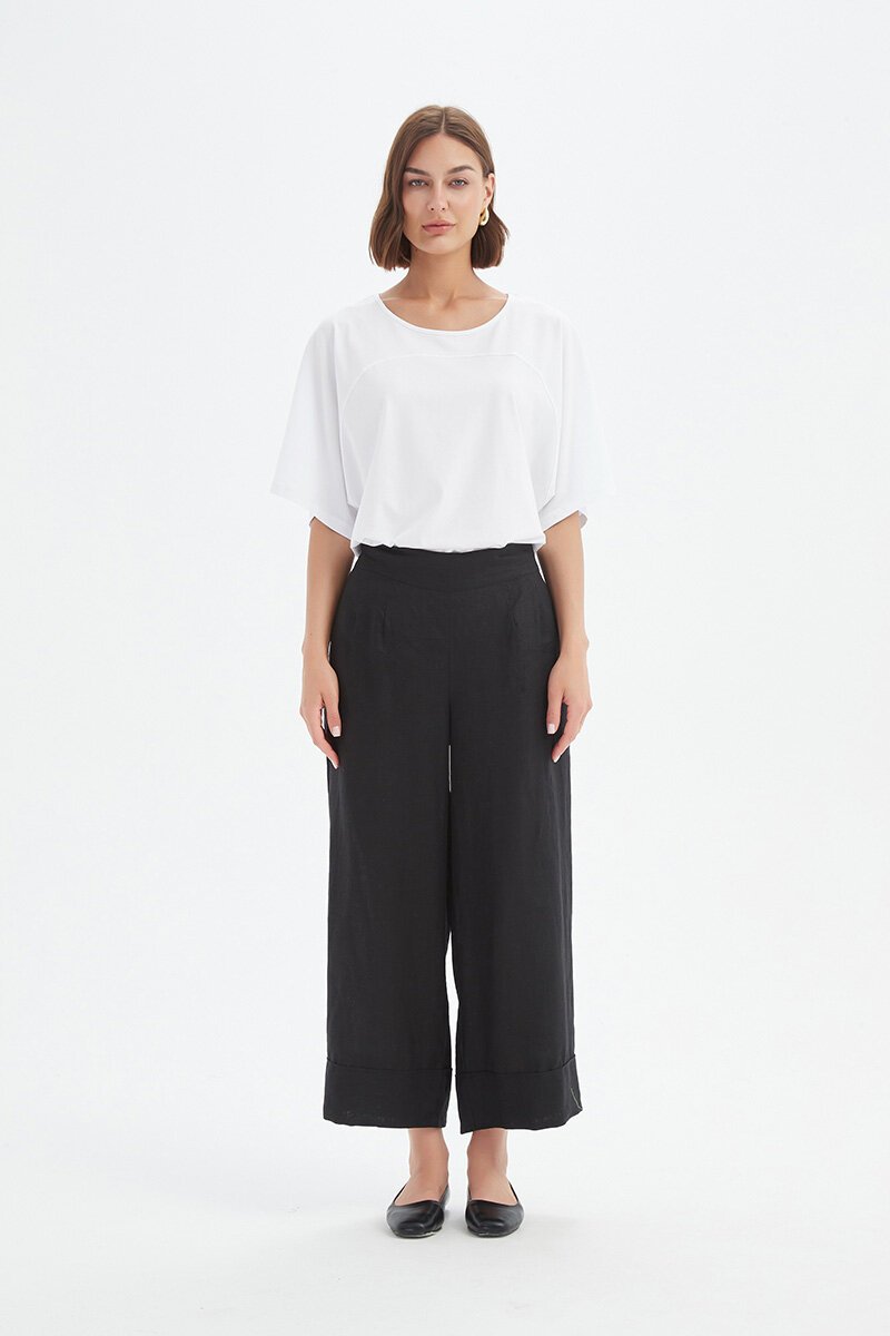 The Tirelli Wide Leg Linen Pant offers a relaxed yet stylish look, perfect for warm weather. Made from breathable linen, these wide-leg trousers provide comfort and elegance. Pair them with a fitted top or a breezy blouse for an effortlessly chic outfit. Team it will the Funnel Top for a on trend look
