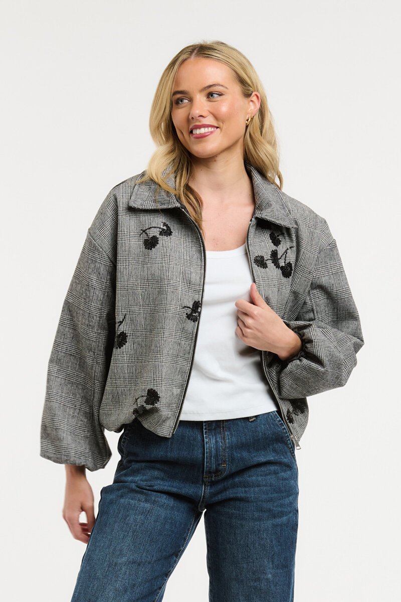 The Check Bomber is your go-to layer with a modern twist. Structured yet easy, with a relaxed fit and subtle embroidery detail that adds something extra to your everyday looks.
