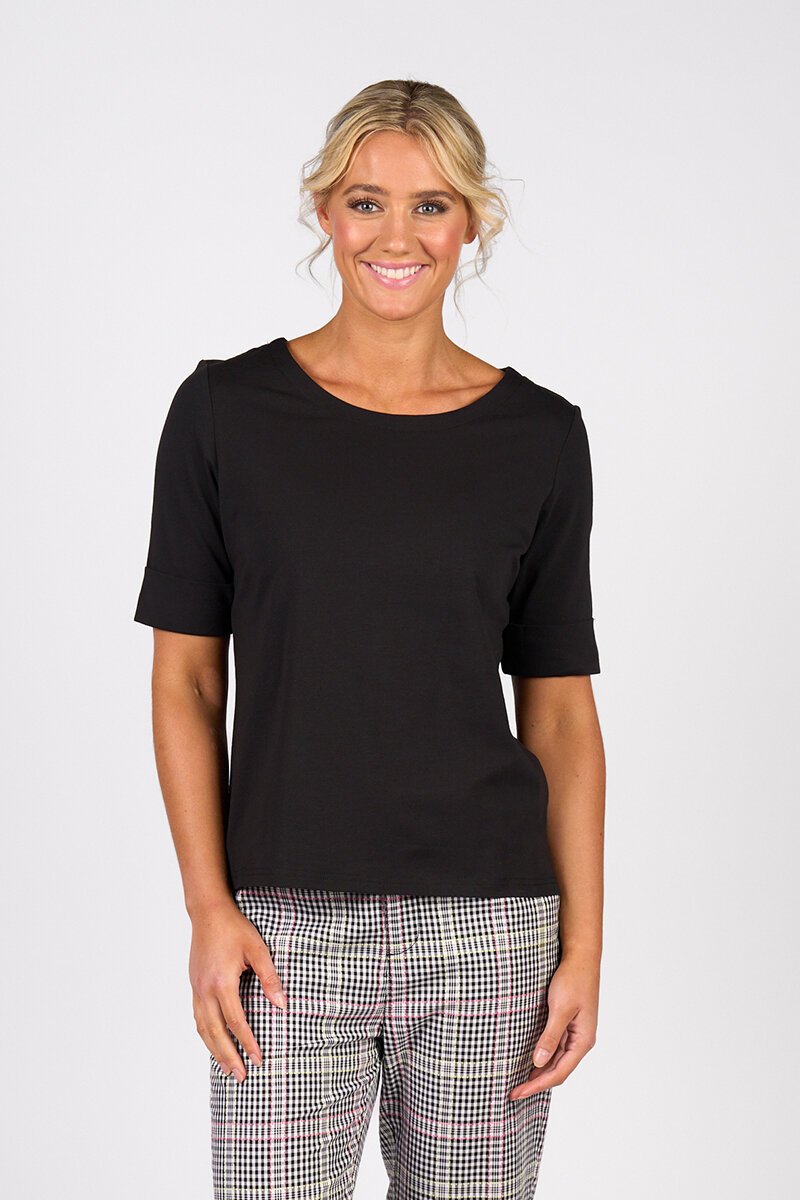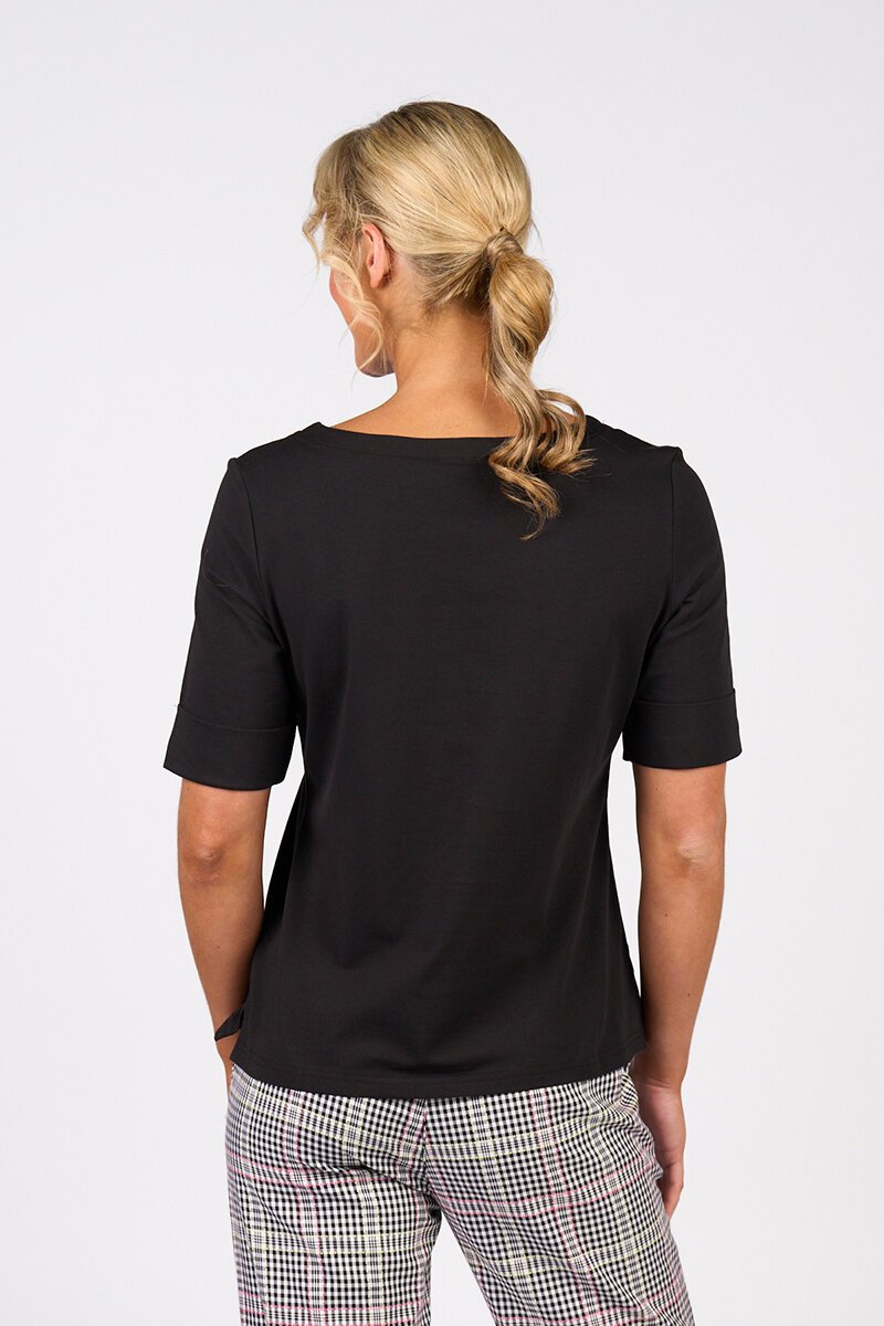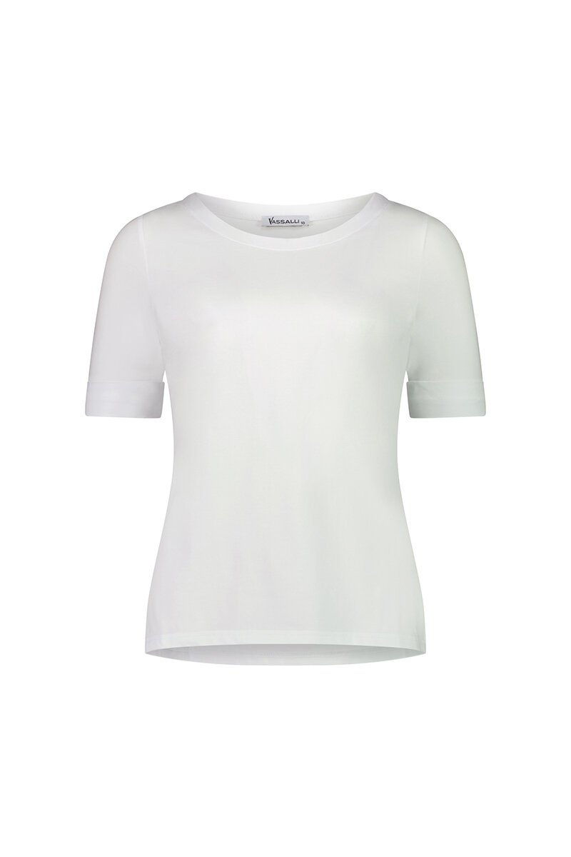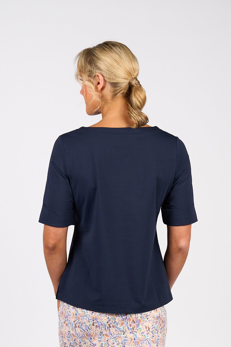 The Vassalli Boat Neck Top brings effortless polish to your everyday looks. Crafted from soft stretch cotton, it features a classic boat neckline, half sleeves with cuff detail, and a flattering fit that pairs beautifully with skirts, jeans, or tailored pants.