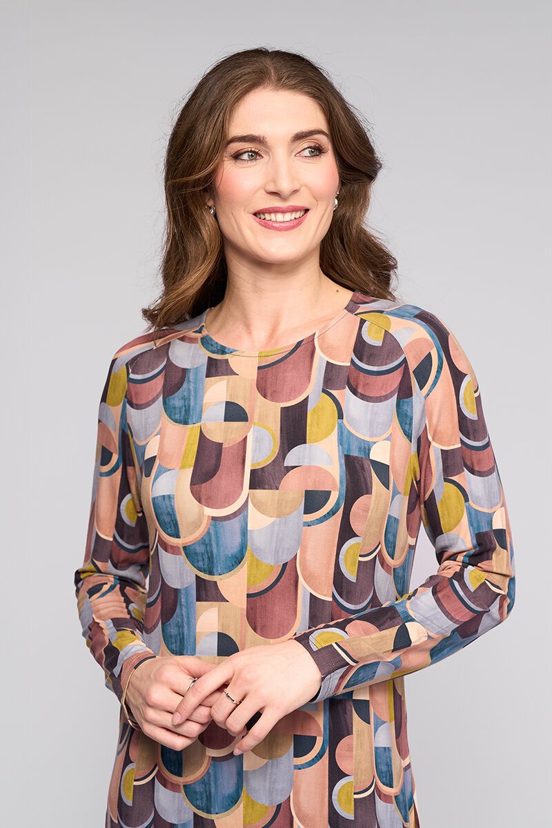 An easy midi dress in the Revolve print, made from a soft, lightweight rayon jersey with stretch. Featuring long sleeves and a round neckline, it drapes comfortably for effortless everyday wear.