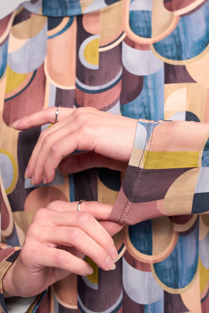 Long sleeve high-neck top in the Revolve print, crafted from soft stretch jersey. Close fitting and easy to wear, it adds retro-inspired pattern and colour to everyday outfits.