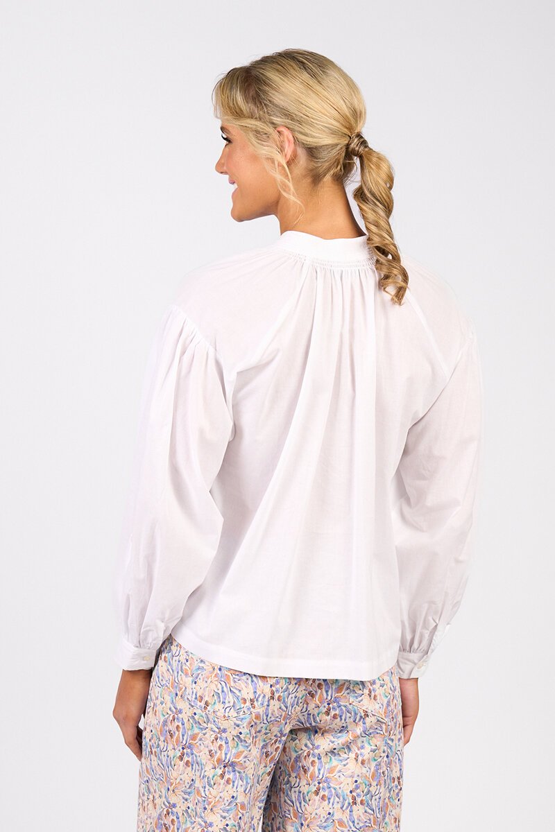 The Vassalli Placket Shirt with Balloon Sleeve brings a soft, feminine edge to classic shirting. Featuring a relaxed silhouette, gathered neckline, and billowy sleeves with button cuffs, it’s perfect tucked into tailored pants or paired with printed crops for an easy, polished look.