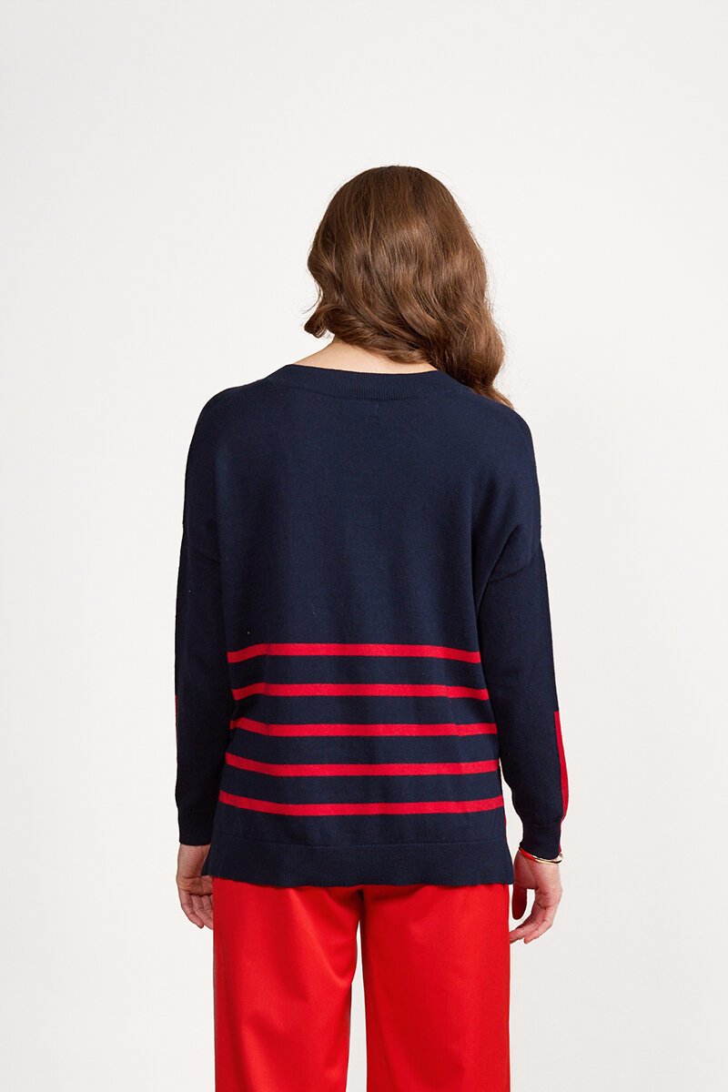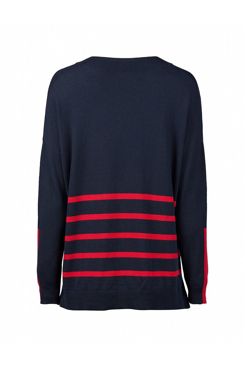 Stripes across body and up sleeve