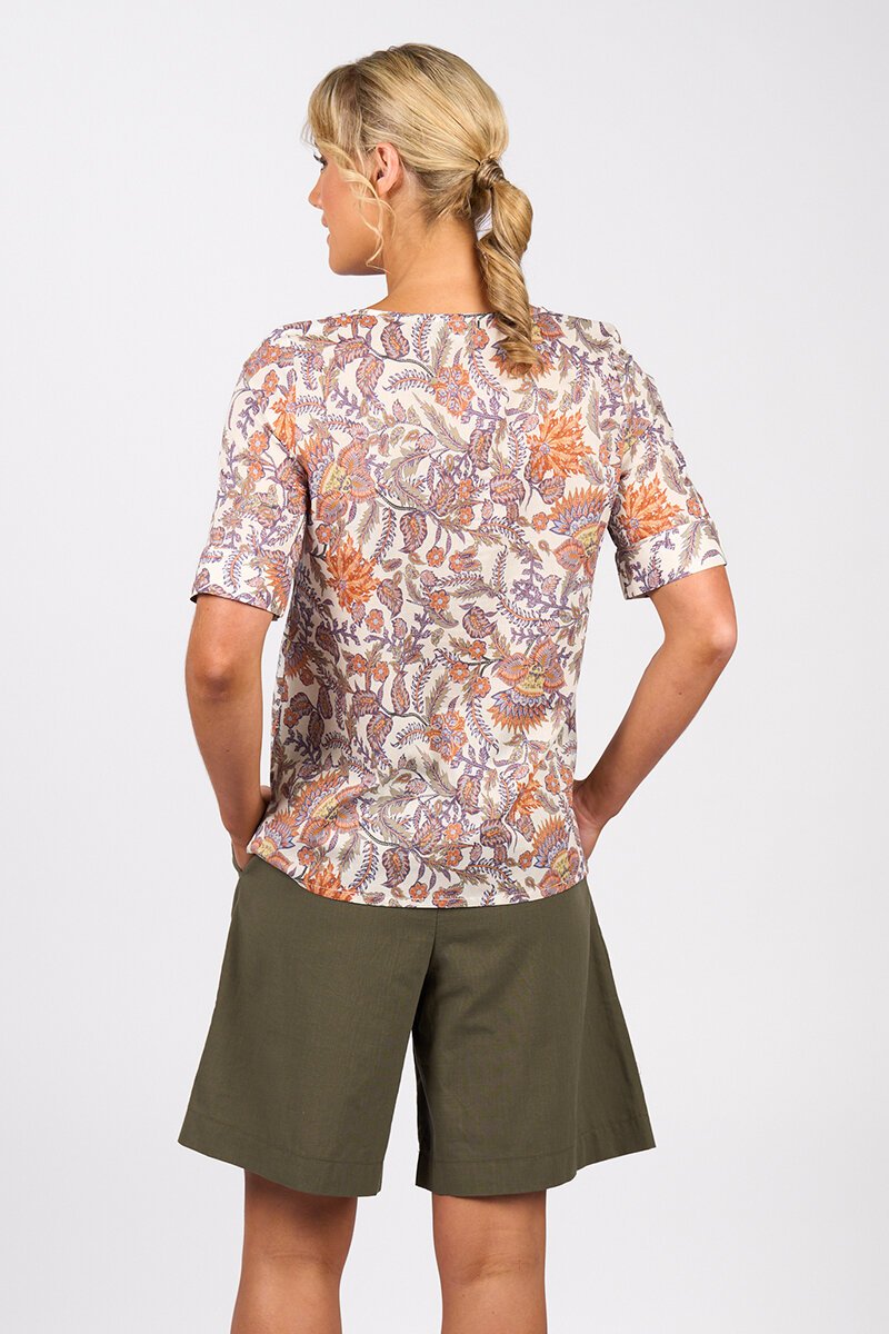 A cheerful pop of print meets classic Vassalli shape. This easy-fitting top has a gently scooped neckline and elbow-length sleeves—perfect for dressing up denim or layering with shorts on sunny days.