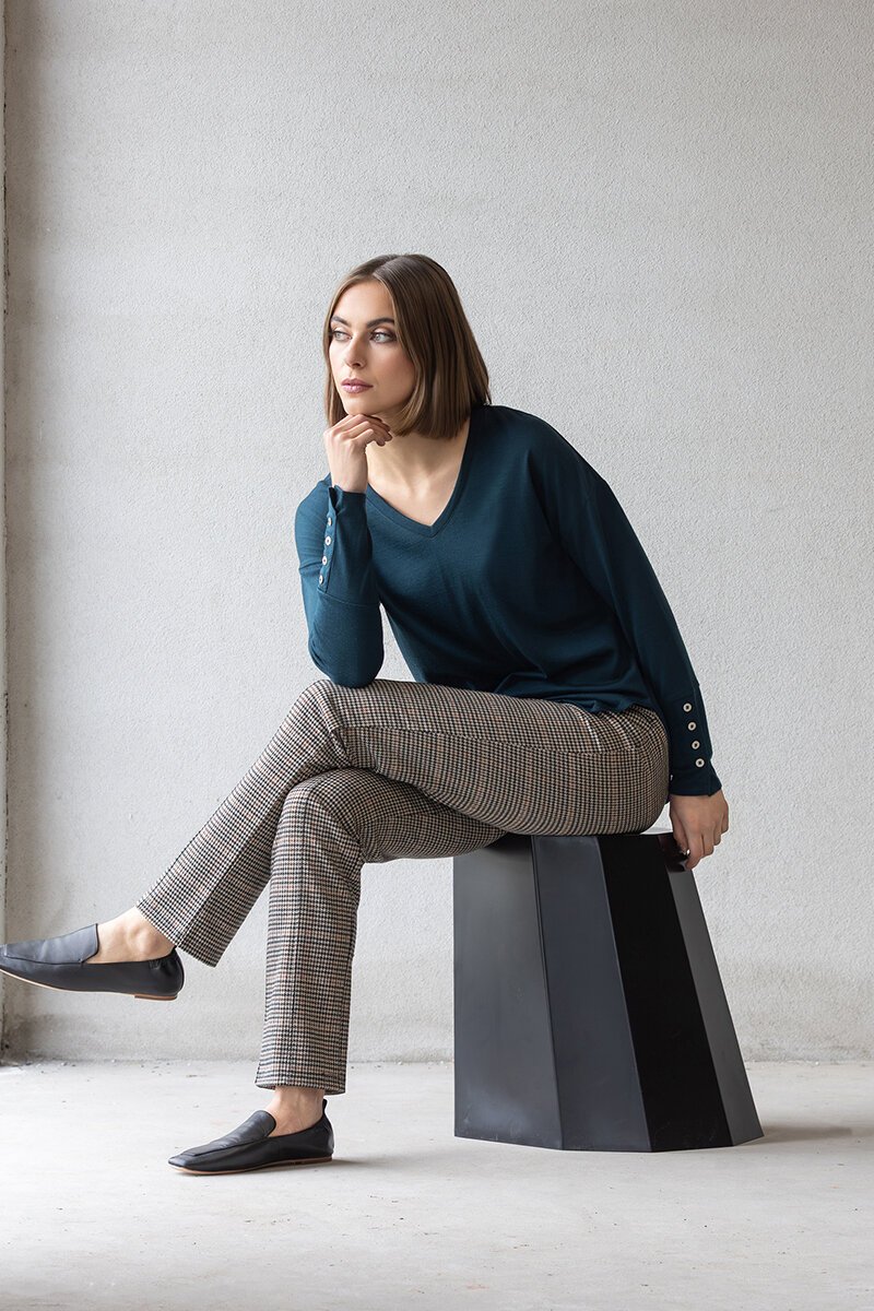 The Vassalli Merino V Neck Button Cuff Top is a wardrobe essential, blending style and comfort effortlessly. Made from soft, lightweight merino wool, it’s perfect for layering or wearing solo. The elegant V-neck and button cuff details add a refined touch, making it a versatile piece for any occasion.
