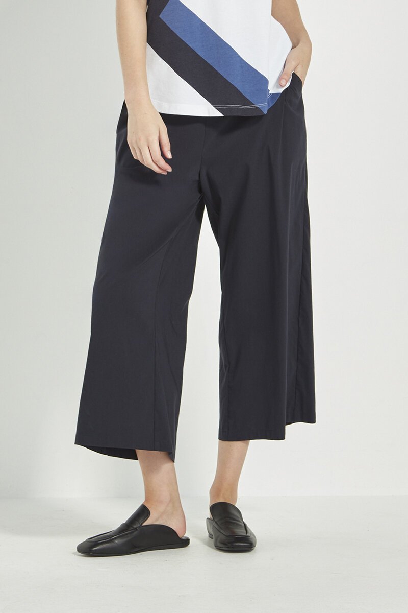 The Verge Acrobat Okawa Pant is an easy, modern cut with a wide leg cropped shape. Made in Verge’s signature lightweight stretch fabric, they’re breathable and comfortable for all-day wear. Finished with side pockets and a clean waistband for everyday versatility.