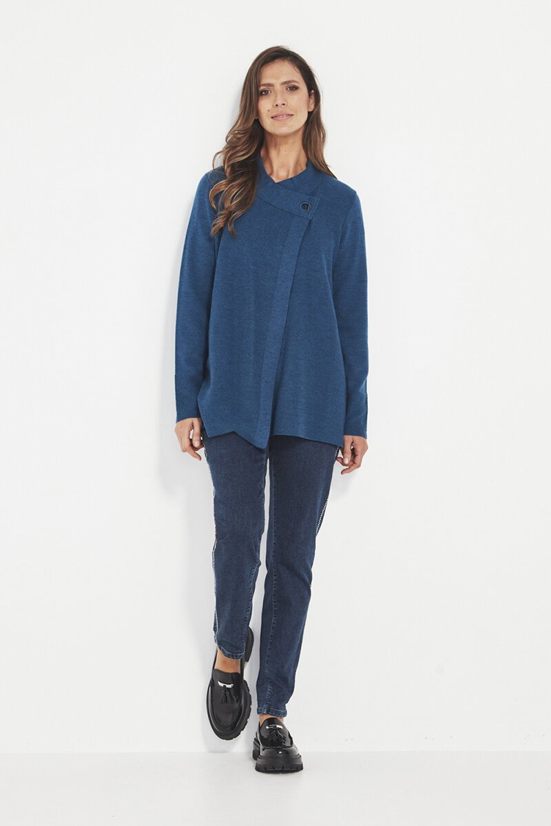 The Angelo Cardi is a softly structured knit with an elegant, elongated shape. A ribbed shawl collar and clean lines make this an easy layering piece with refined appeal.