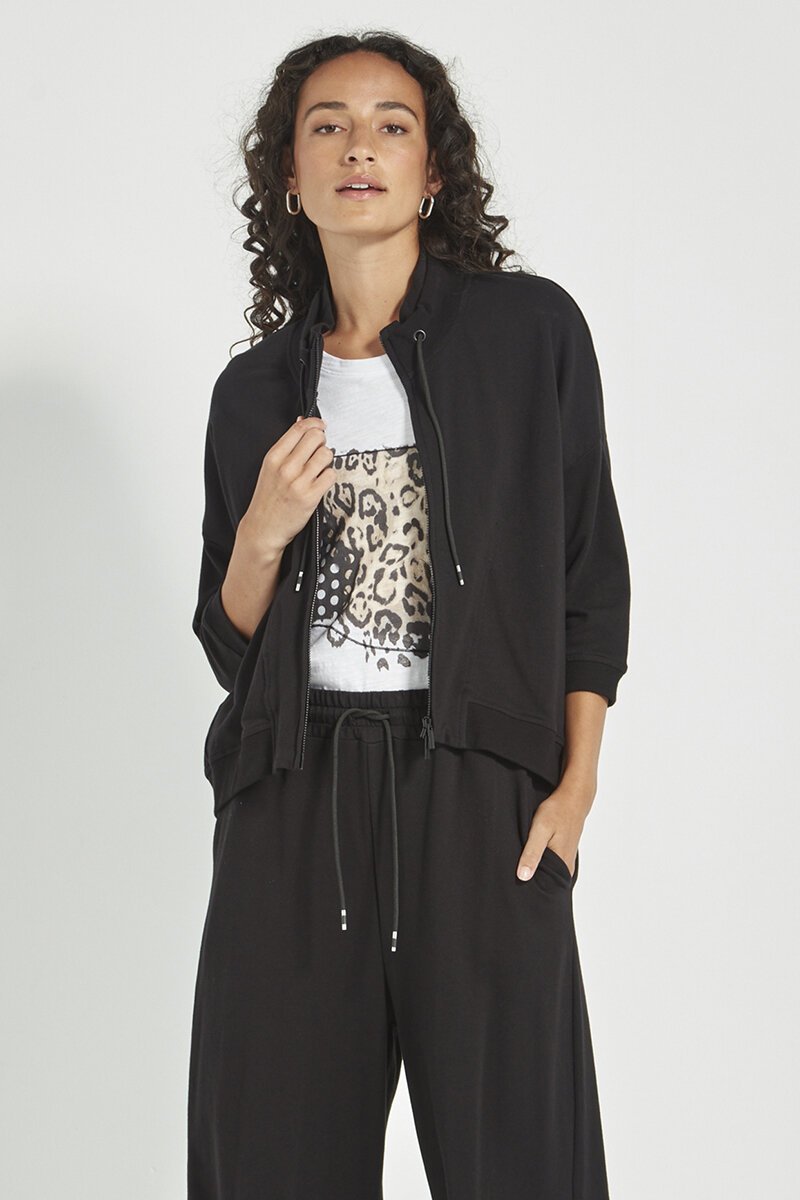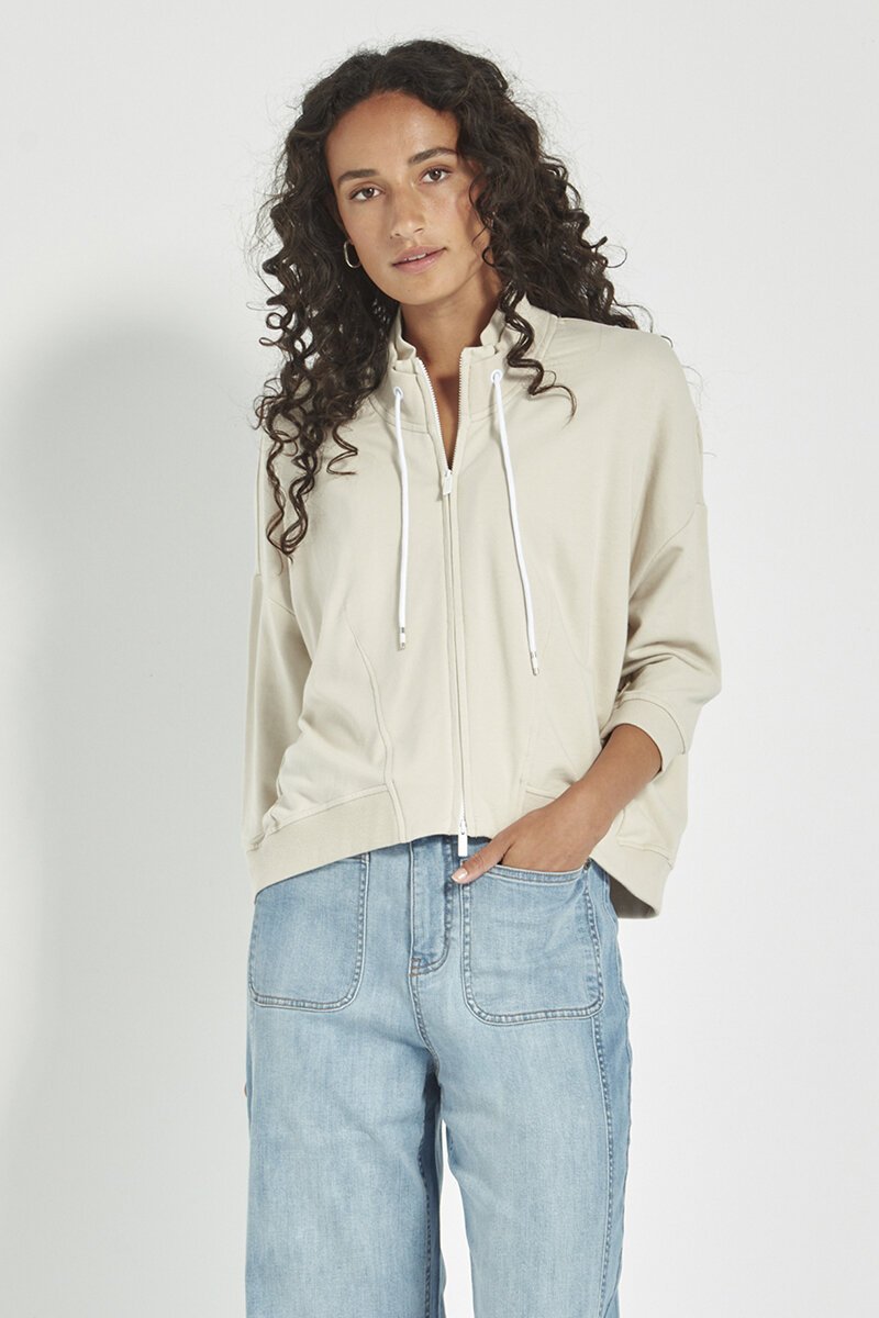 The Verge Downtown Jacket is your new go-to for off-duty days. Made from soft stretch cotton with a drawcord collar and relaxed zip-through shape—perfect with the matching Civic Pant for that easy, elevated lounge look.