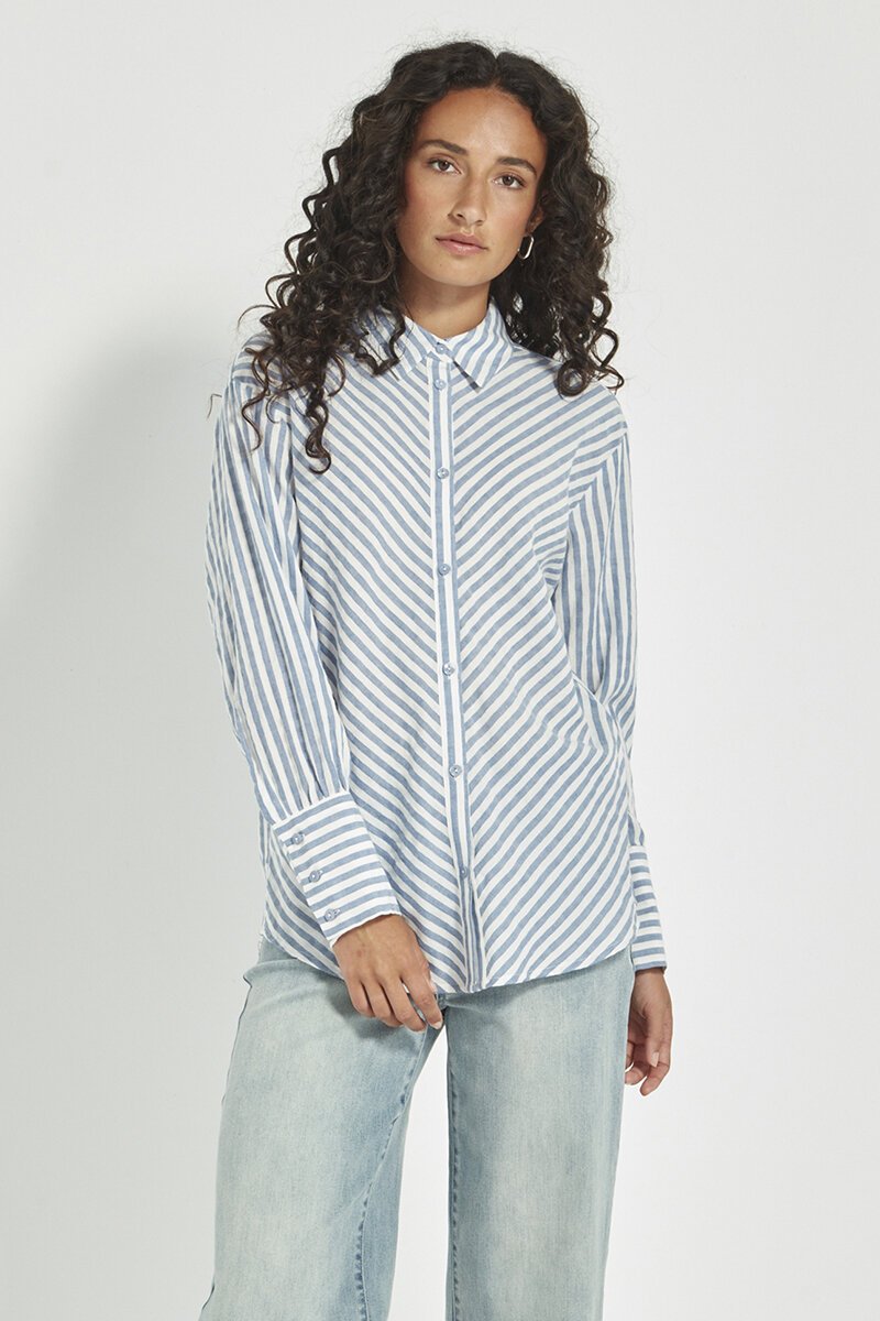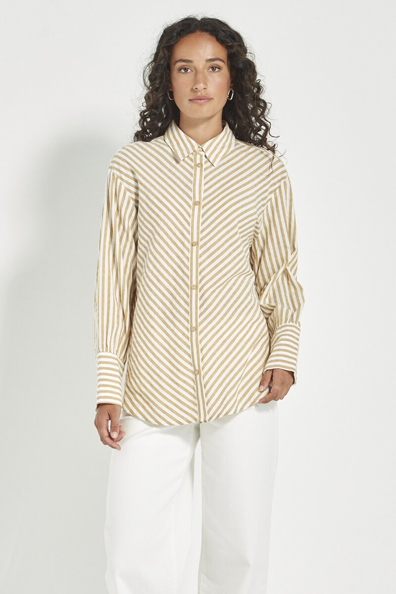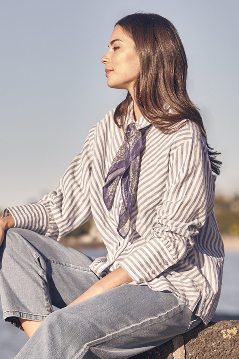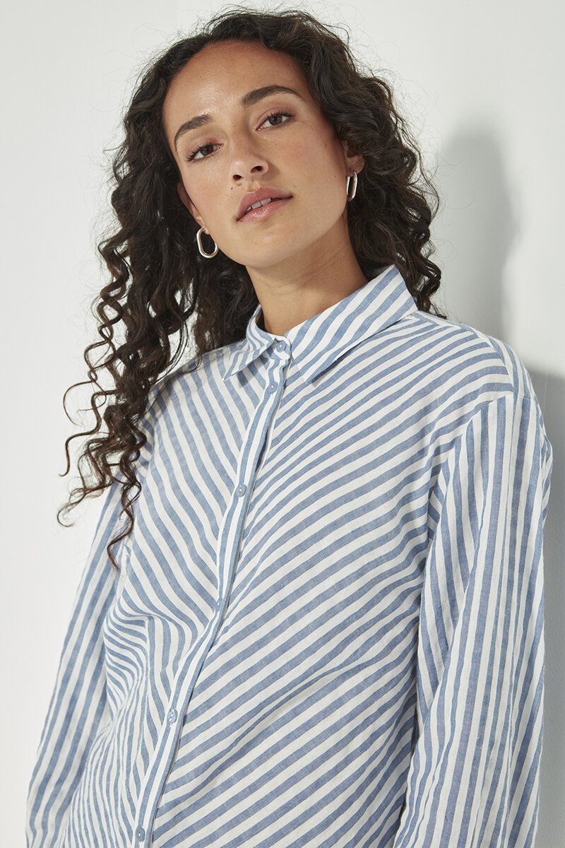 The Verge Neve Shirt is a soft, breathable cotton style with a relaxed button-up fit. Featuring a subtle stripe and easy-to-wear shape, it’s perfect for pairing with denim or layering under a blazer for effortless everyday style.
