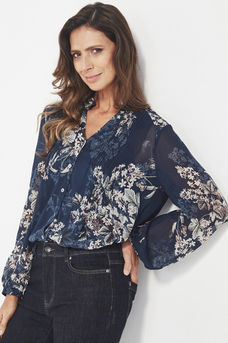 The Zen Blouse is a softly draped, feminine style with gentle structure and fluid movement. Finished with refined details, it’s an easy, polished piece for everyday or dressier wear.