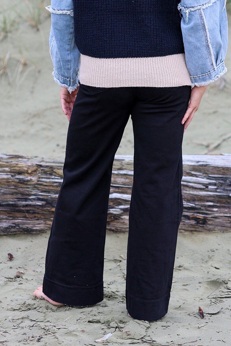 The Wakee Black Pocket Jean is your go-to for effortless everyday style. With a flattering wide-leg cut and practical front pockets, they offer the perfect balance of comfort and structure. Dress them up with a blazer or keep it casual with a cosy knit.