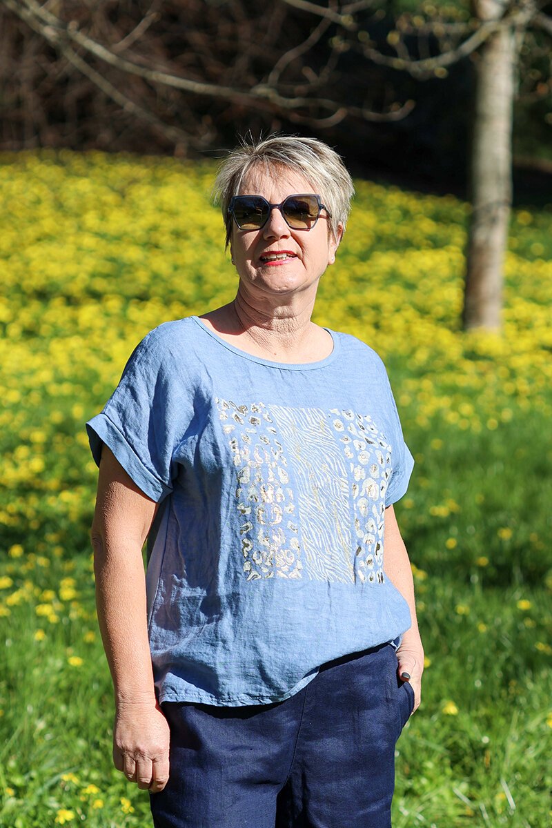 The Wednesday Lulu Foil Animal Print Top is a fun, easy piece to slip into any day of the week. With its relaxed shape and bold foil animal print front, it’s an instant style lift for your casual lineup.
